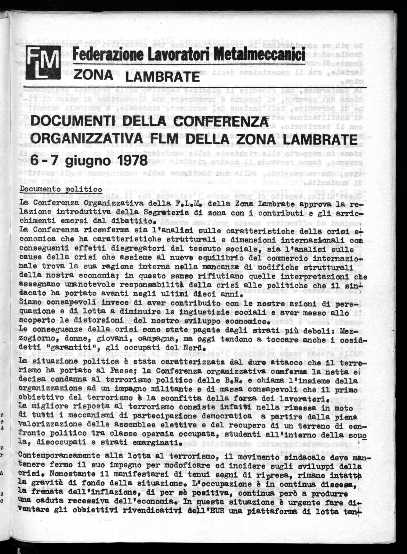 La Conferenza Organizzativa della F.L.M. della Zona Lambrate approva la re— lazione introduttiva della Segreteria di zona con i contributi e gli arric— chimenti emersi dal dibattito.
