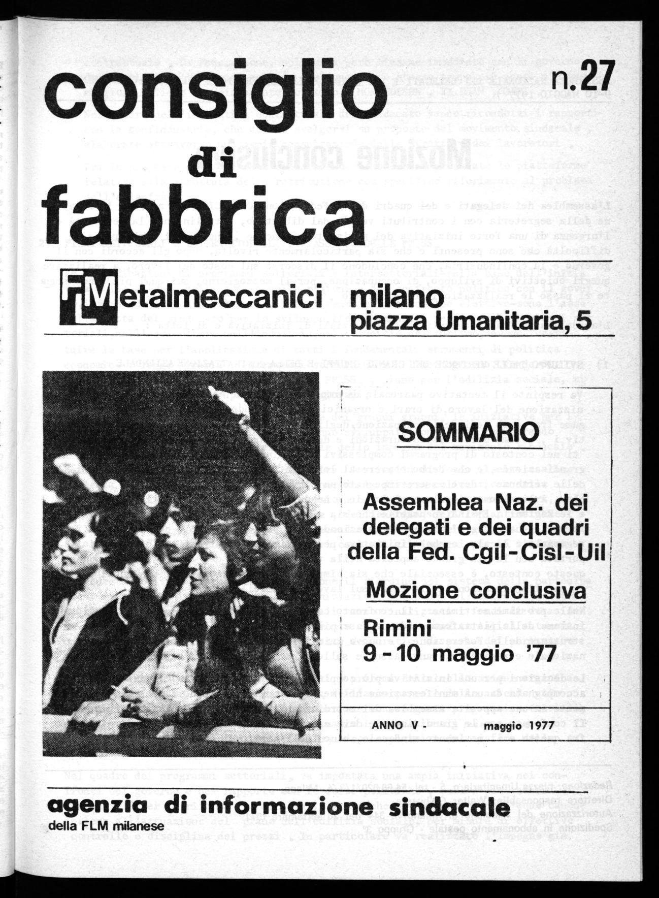 L'assemblea dei delgati e dei quadri della Federazione CGIL-CISL-UIL approva i punti indicati nella relazione come punti condizionanti da proporre nell'incontro con i partiti per la formazione di un nuovo programma politico, con tali indicazioni, il sindacato intende contribuire autonomamente alla definizione di un programma di misure organiche e urgenti per affrontare la crisi con un nuovo e diverso orientamento della politica economica . Gli elementi di certenza e di avanzamento nella direzione politica del paese, reclamati dal sindacato, indicano la ricerca e la costruzione dei necessari consensi e solidarietà , e dei sufficienti sostegni parlamentari, nella fase dei confronti in corso fra le forze politiche, a questo nuovo e più adeguato programma del governo .