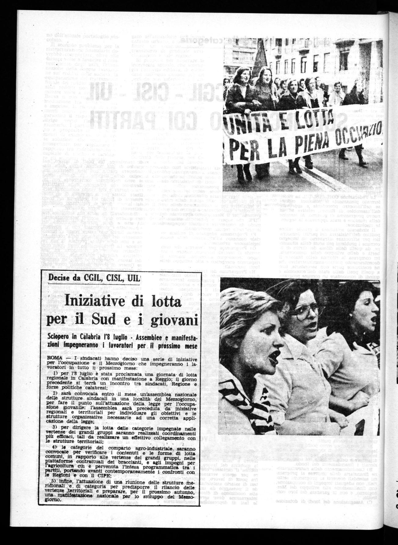 per 1'8 luglio è stata proclamata una giornata• di lotta regionale in Calabria con manifestazione a Reggio; il giorno precedente si terrà un incontro tra sindacati, Regione e forze politiche calabresi;