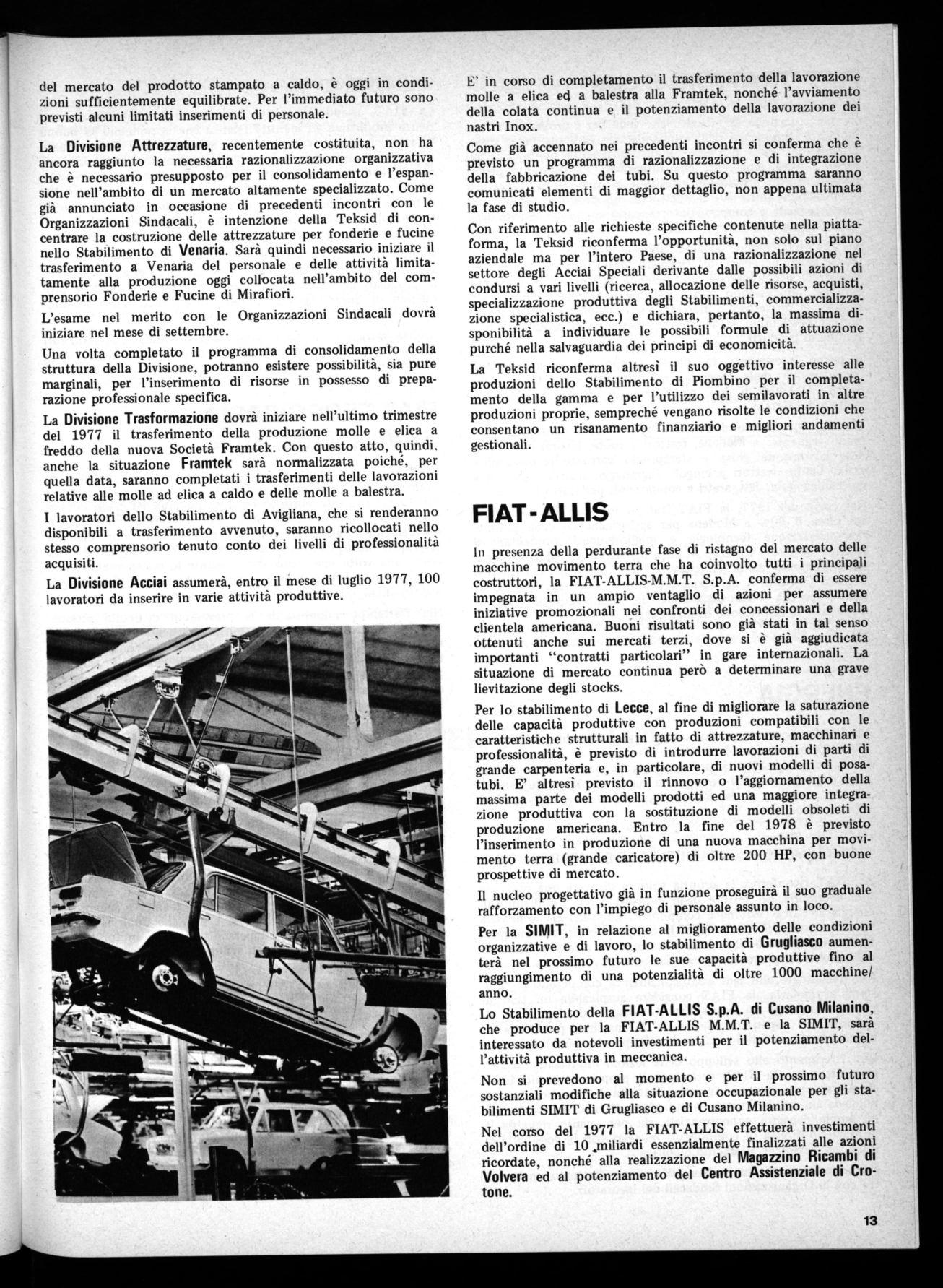 Nel corso del 1977, la Teksid investirà in totale circa 57 miliardi di cui circa 3/4 per miglioramenti del prodotto e razionalizzazione della gestione.