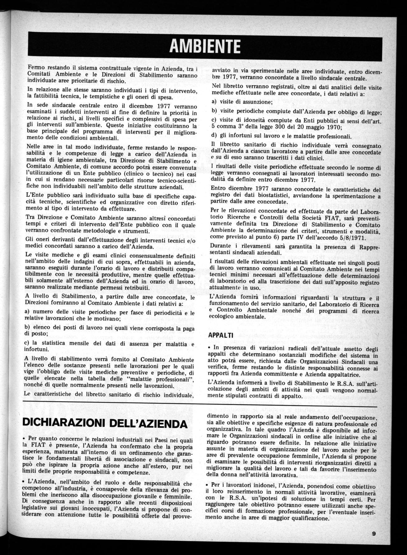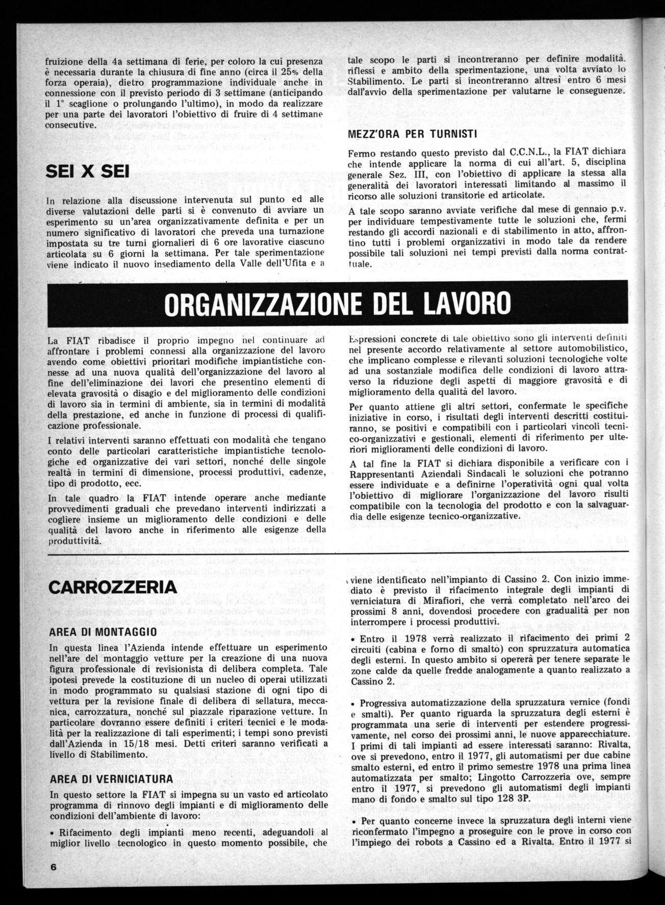 Soprattutto viene definitivamente conquistata la mezz'ora di riduzione per i turnisti, affermando così un consolidamento decisivo di una conquista che, se non si realizzava alla FIAT, veniva sempre più messa in discussione nelle altre aziende col risultato quindi di consolidare la linea di quelle forze che puntano, per affrontare la crisi, all'aumento dello sfruttamento, a peggiorare le condizioni dei lavoratori e a diminuire l'occupazione. Sullo stesso salario va sottolineata l'importanza della acquisizione di quasi tutte le richieste: sul premio annuale è stato conquistato come quantità il 100% della rivendicazione e sulla struttura del salario una maggiore perequazione. Questi risultati della vertenza FIAT realizzano indubbiamente un generale rafforzamento delle lotte della classe operaia. Sono in particolare l'esempio del valore generale che hanno per il Paese le grandi vertenze aperte nei mesi scorsi, molte delle quali, come quelle delle partecipazioni statali, non sono ancora concluse e si affermeranno nel prossimo futuro come il centro di lotte e di iniziative sino alla loro positiva conclusione.