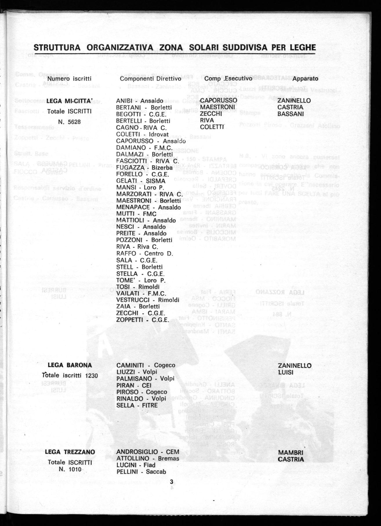 Portare a conoscenza di tutti la struttura organizzativa della zona, sia gli organismi dirigenti che le strutture organizzative ed operative, ha il grosso significato di rafforzare il modo d'essere dell'organizzazione di tenere sempre vivo il rapporto fra questa, i consigli di fabbrica ed i lavoratori.