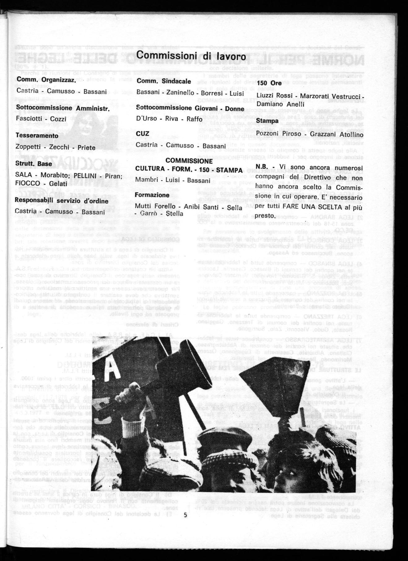 Il Direttivo di zona nomina commissioni unitarie almeno per i seguenti settori di attività: organizzazione tesseramento, amministrazione, donne, formazione 150 ore, stampa.