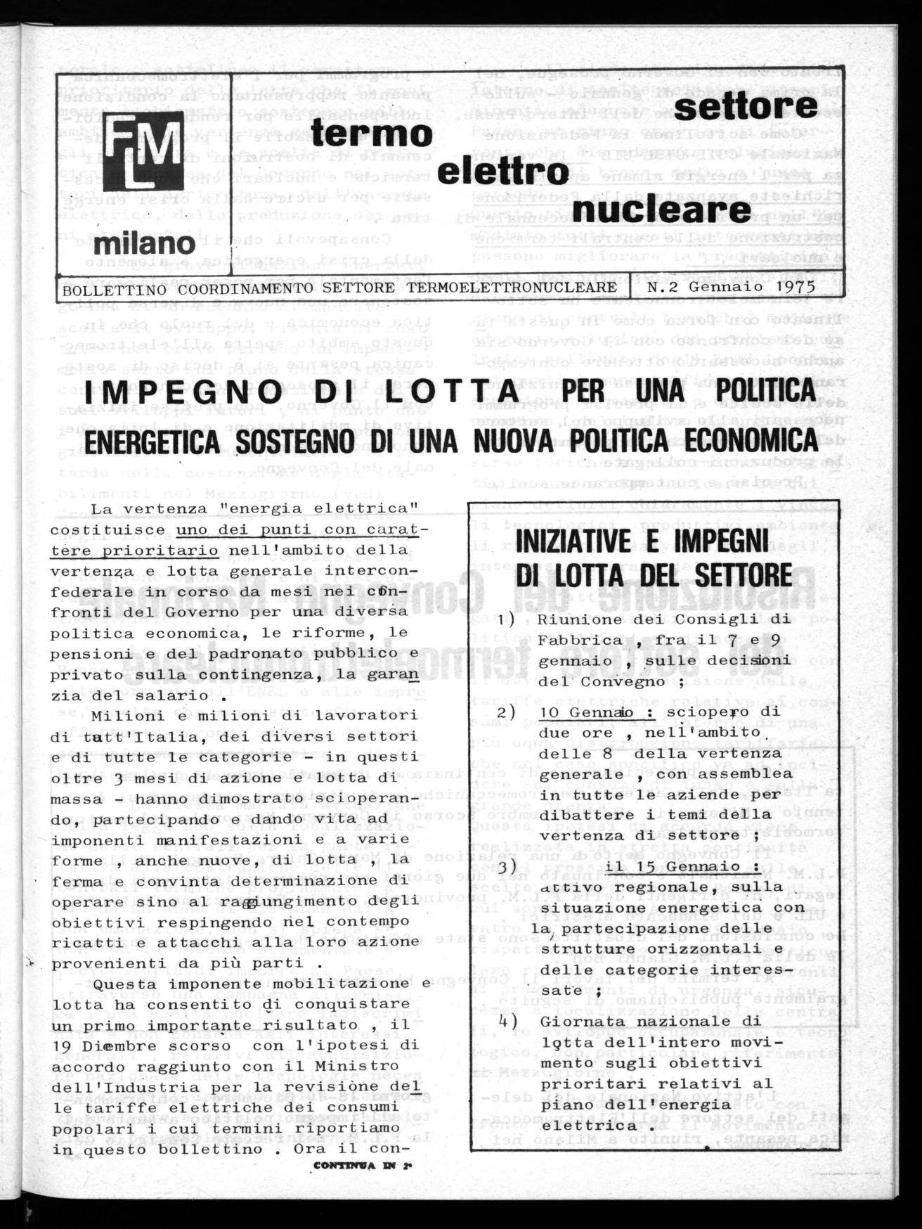 Gennaio , con la prtecipazione delle strutture sindacali orizzontali , provinciali e regiona li, promossi d'intesa con le altre categorie interessate, in particolare in Lombardia, Liguria, Campania,Umbria,Puglia per la definizione degli obiettivi puntuali inerenti sia alla situa zione energetica locale, sia allo sviluppo dell'attività manufatturiera .