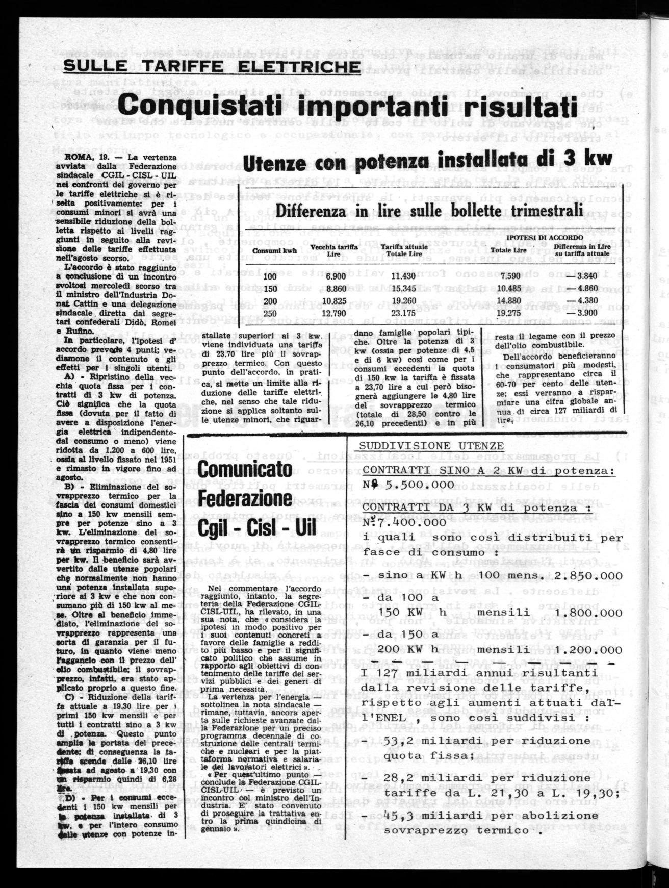 La vertenza "energia elettrica" costituisce uno dei punti con carattere prioritario nell'ambito della vertenza e lotta generale interconfederale in corso da mesi nei cerifronti del Governo per una diverga politica economica, le riforme, le pensioni e del padronato pubblico e privato sulla contingenza, la garan zia del salario .
