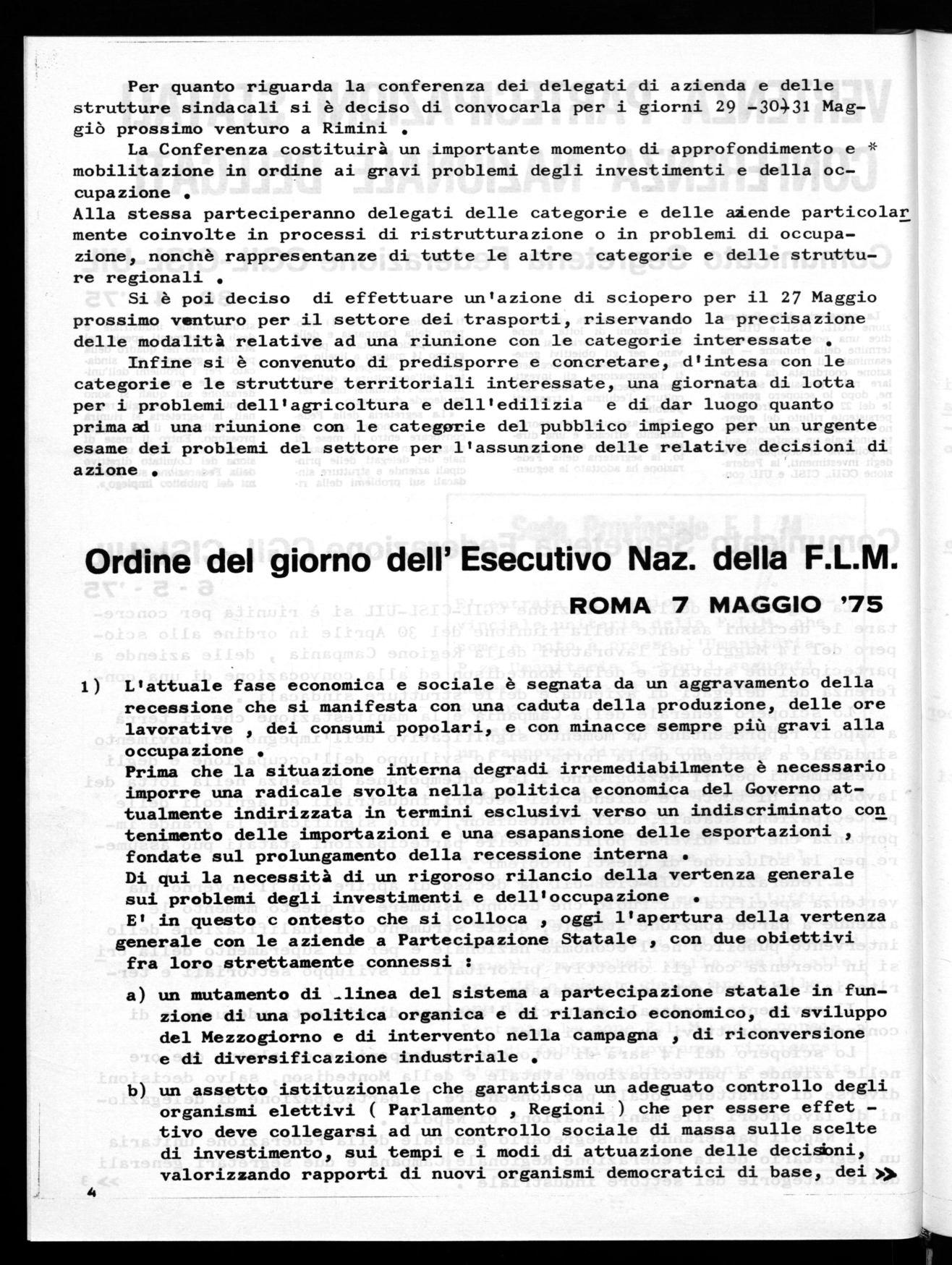ordine del giorno Comitato Esecutivo Nazionale FLM del 6-7 maggio 1975;