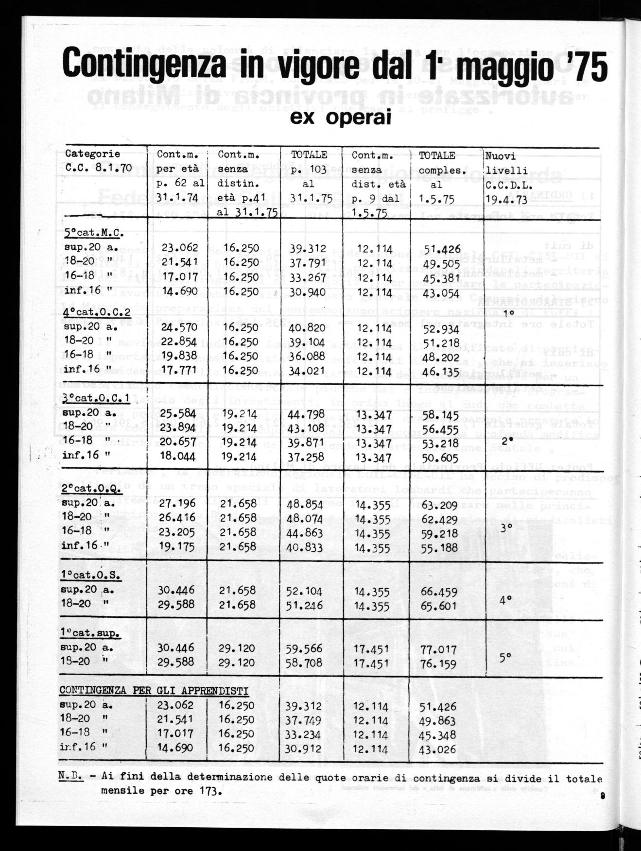 Cassa Integrazione a Milano; Contingenza in vigore dal 1° mag . gio 1975;