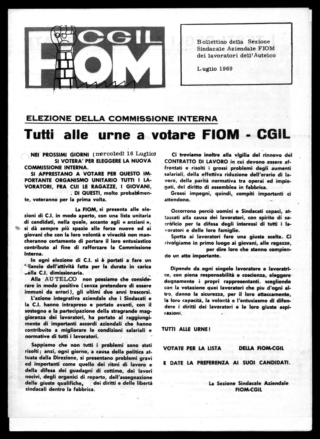 ELEZIONI COMMISSIONE INTERNA ANNO 1969 - operai -