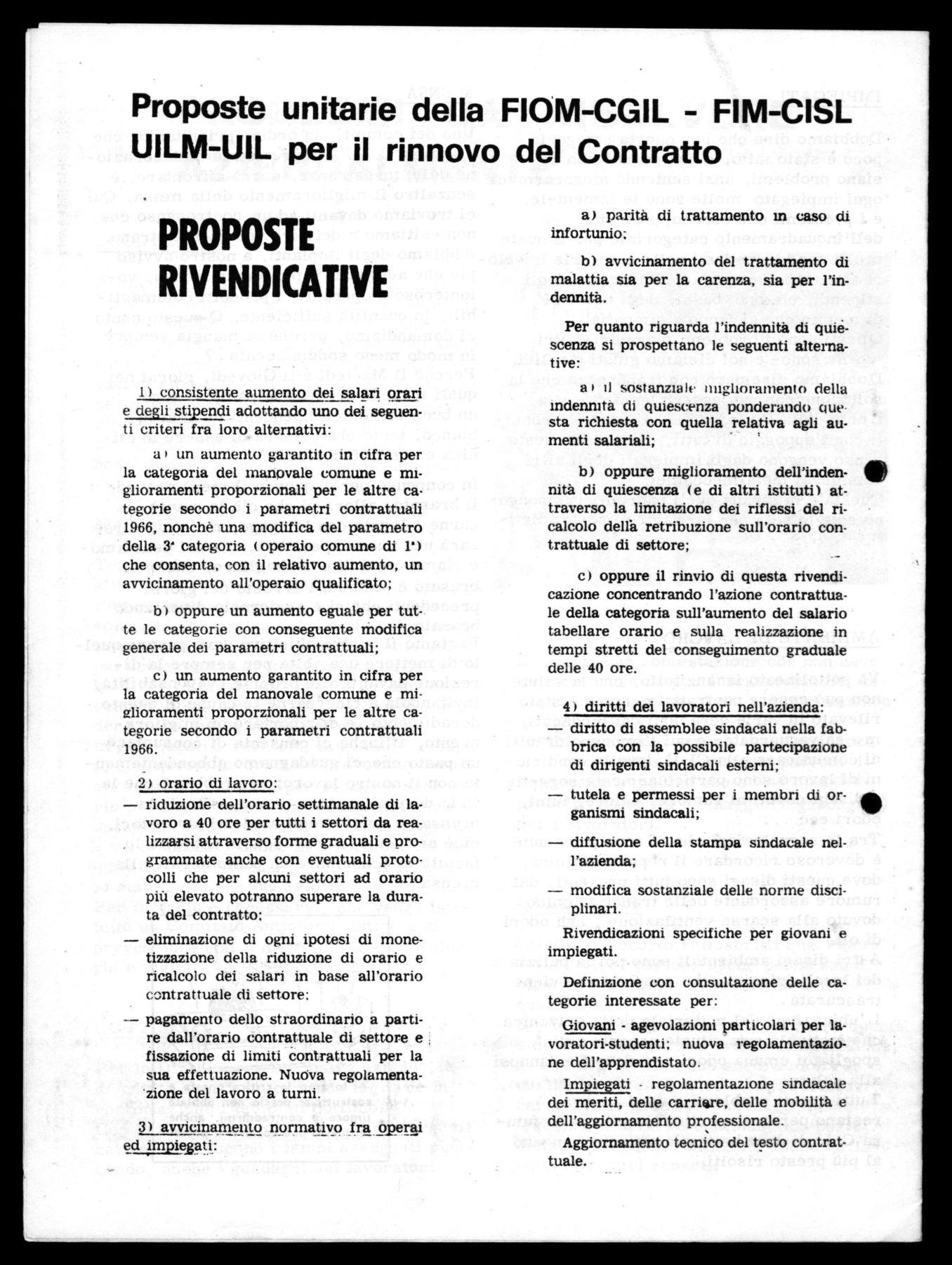 Ci troviamo inoltre alla vigilia del rinnovo del CONTRATTO DI LAVORO in cui devono essere affrontati e risolti i grossi problemi degli aumenti salariali, della effettiva riduzione dell'orario di lavoro, della parità normativa tra operai ed impiegati, del diritto di assemblea in fabbrica.