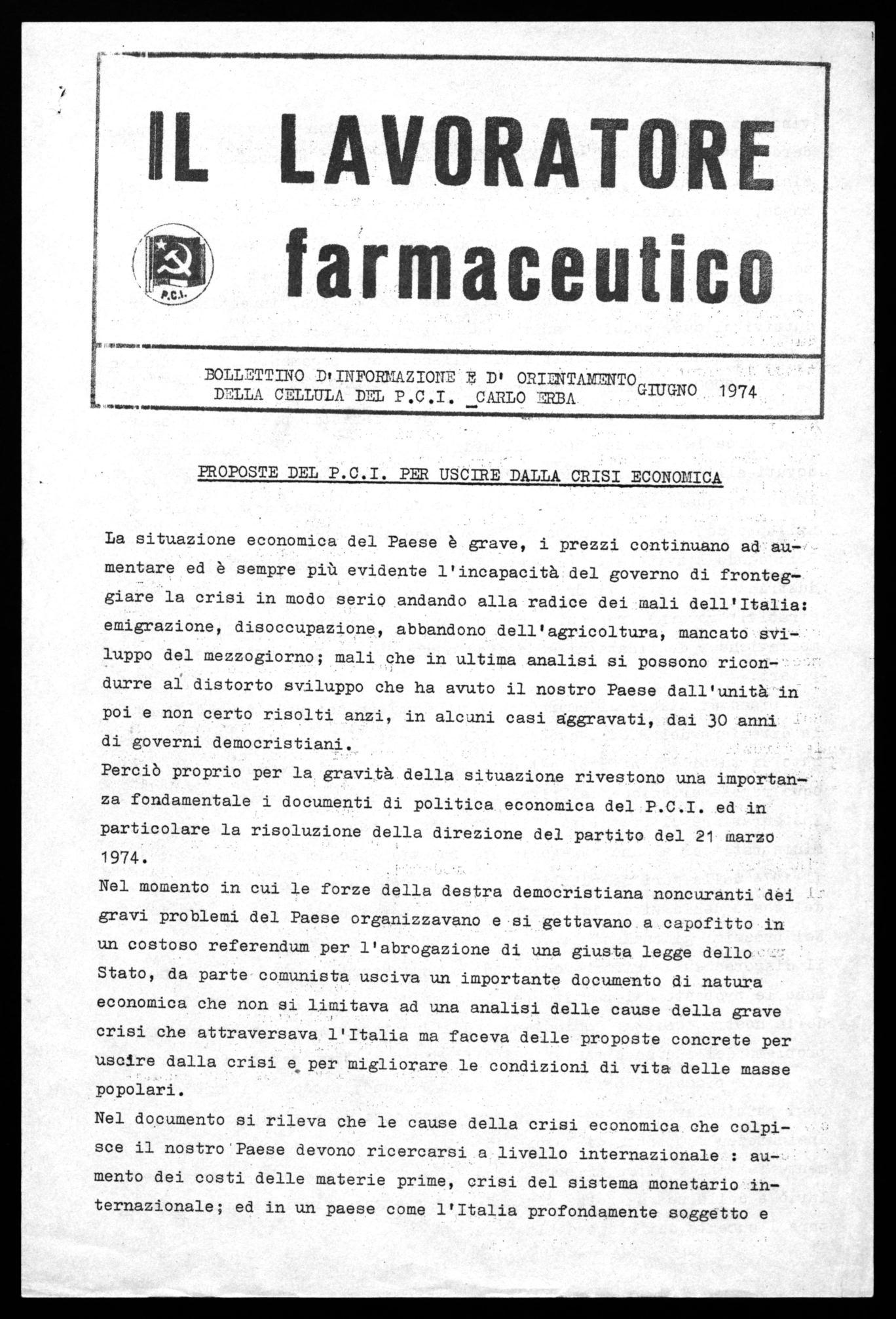 Sul piano di `= misure di 'iMérgeràailiér a-diféàa dei redditi più bassi la direzione del P.C.I. avanza delleproposte per il blocco generalizzato di tutti gli' 'affitti e 'l'aVVIO già -dal 1974 di norme per una • equa regolaméntazio/ie dei .fiííi B'e'lle case di nuova costruzione ? la instaurazione diprezZi. 'po'litiiTper -pas-t-à, pane e latte, prezzi amministrati per alcune categorie di prodotti, blocco per almeno tutto il '1974 delle tariffe púbblíche, aggancio delle pensioni all'aumento del costo della vita, detrazioni per i bassi redditi. Nei prossimi glornalinir la'C'elluia-T.'MBA si impegna a sviluppare il discorso'sulle rifo'rmh Chiatendb e analizzando meglio quelle che sono le proposte del partito pér'ia risoluzione dei grandi problemi della,nOstra società, comineib.ndó ad affrontare nel primo numero il problema della casa e tenterà di"diffondere il "lavoratore farmaceutico" nelle piccole fabbriche della zona Dergano; piccole fabbriche oggi particolarmente soggette a gr:avi processi di ristrutturazione, • insicurezza del posto di lavoro -ed ésaulsione di manodopera specialmente femminile oltre ai prqbleMidirsfruttamentopdel basso salario e della scarsa forza àindacale di íVanzare richieste per contrar tare l'aumento del costo della vita.