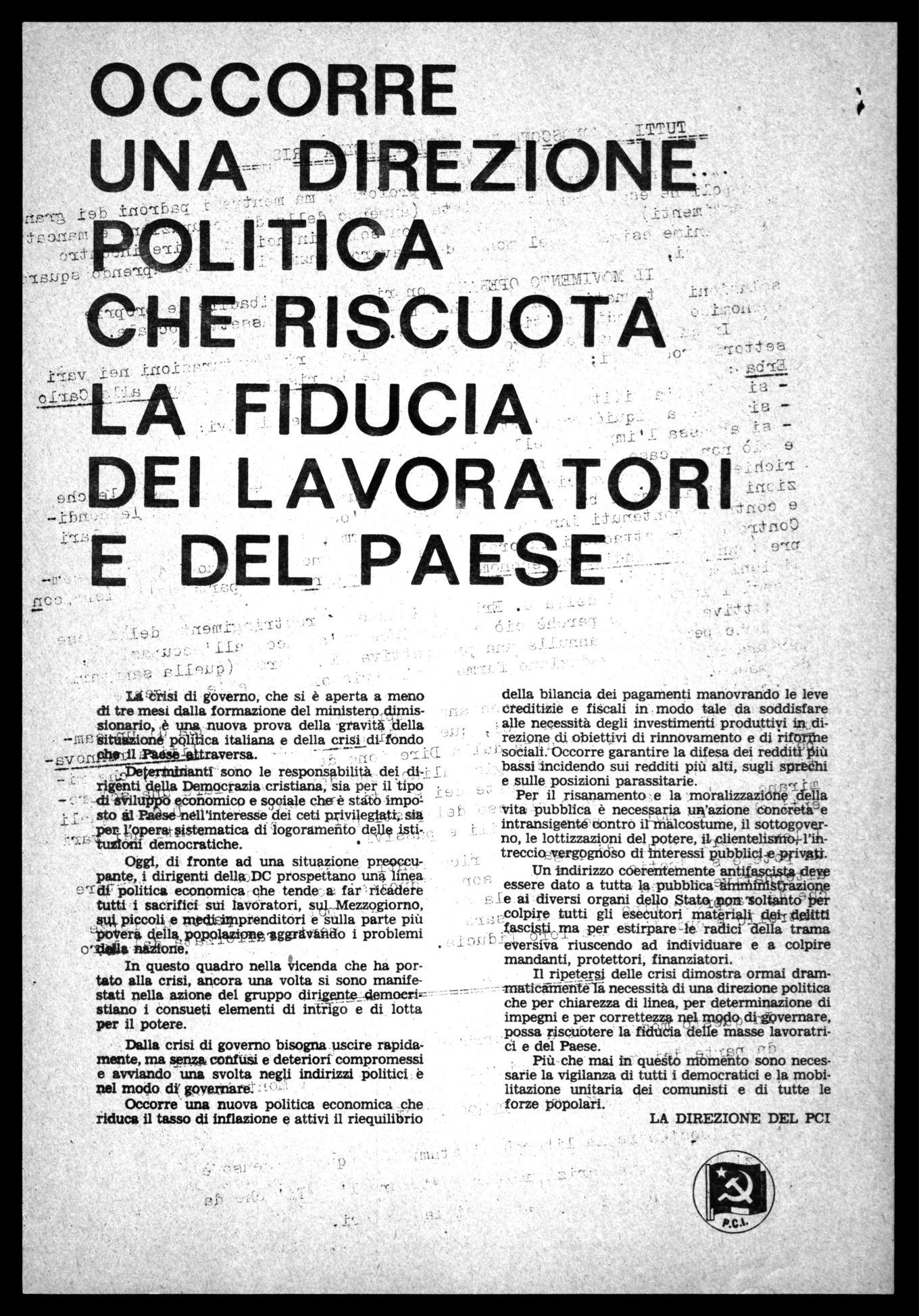 La situazione economica del Paese è grave, i prezzi continuano ad aumentare ed è sempre più evidente l'incapacità del governo di fronteggiare la crisi in modo serio andando alla radice dei mali dell'Italia: emigrazione, disoccupazione, abbandono dell'agricoltura, mancato sviluppo del mezzogiorno; mali che in ultima analisi si possono ricon-' durre al distorto sviluppo che ha avuto il nostro Paese dall'unità in poi e non certo risolti anzi, in alcuni casi aggravati, dai 30 anni di governi democristiani.