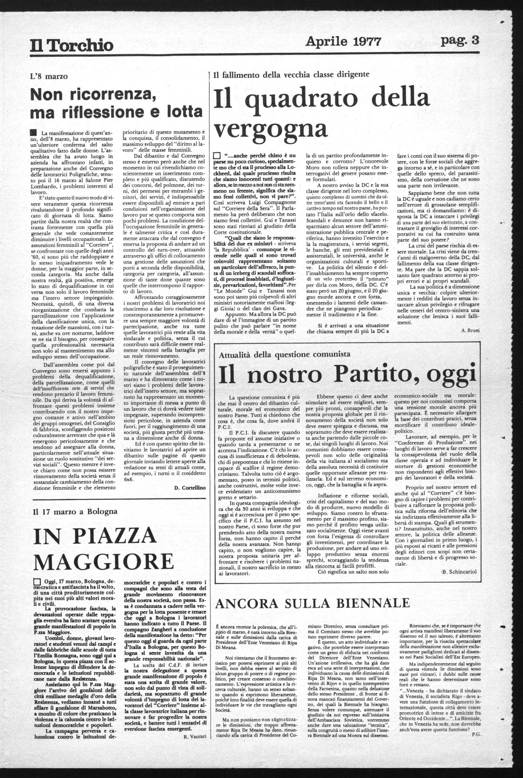 La presentazione del TORCHIO teneva conto della grande capacità di lotta della classe operaia, ma sottolineava anche la pericolosità del riguargito fascista e delle forze conservatrici che tendevano a ricacciare indietro le conquiste dei lavoratori.