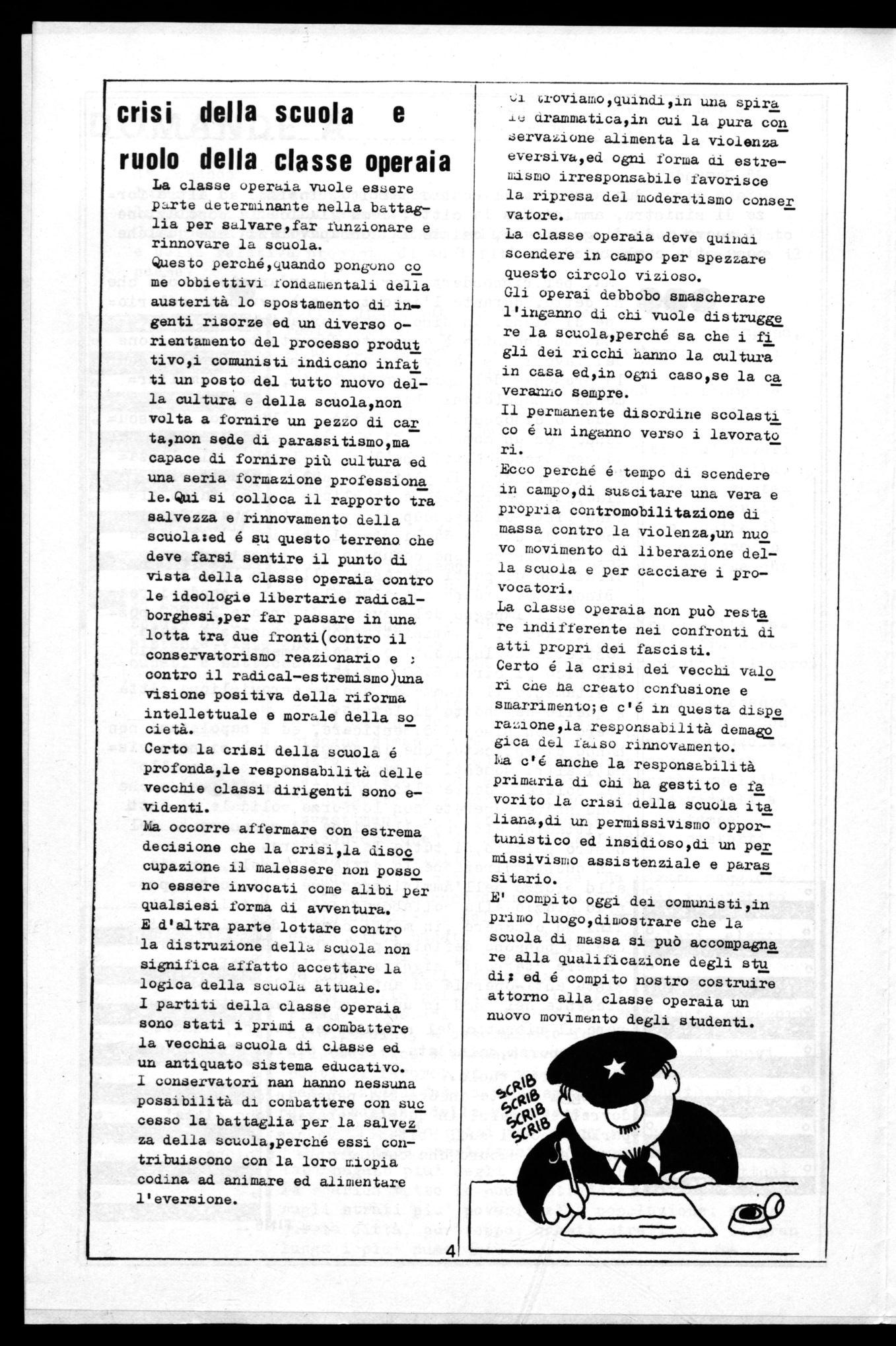 E' compito oggi dei comunisti,in primo luogoydimostrare che la scuola di massa si può accompagna re alla qualificazione degli stu di; ed é compito nostro costruire attorno alla classe operaia un nuovo movimento degli studenti.