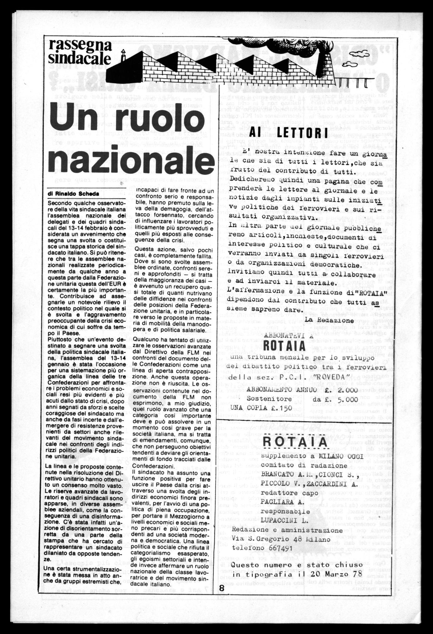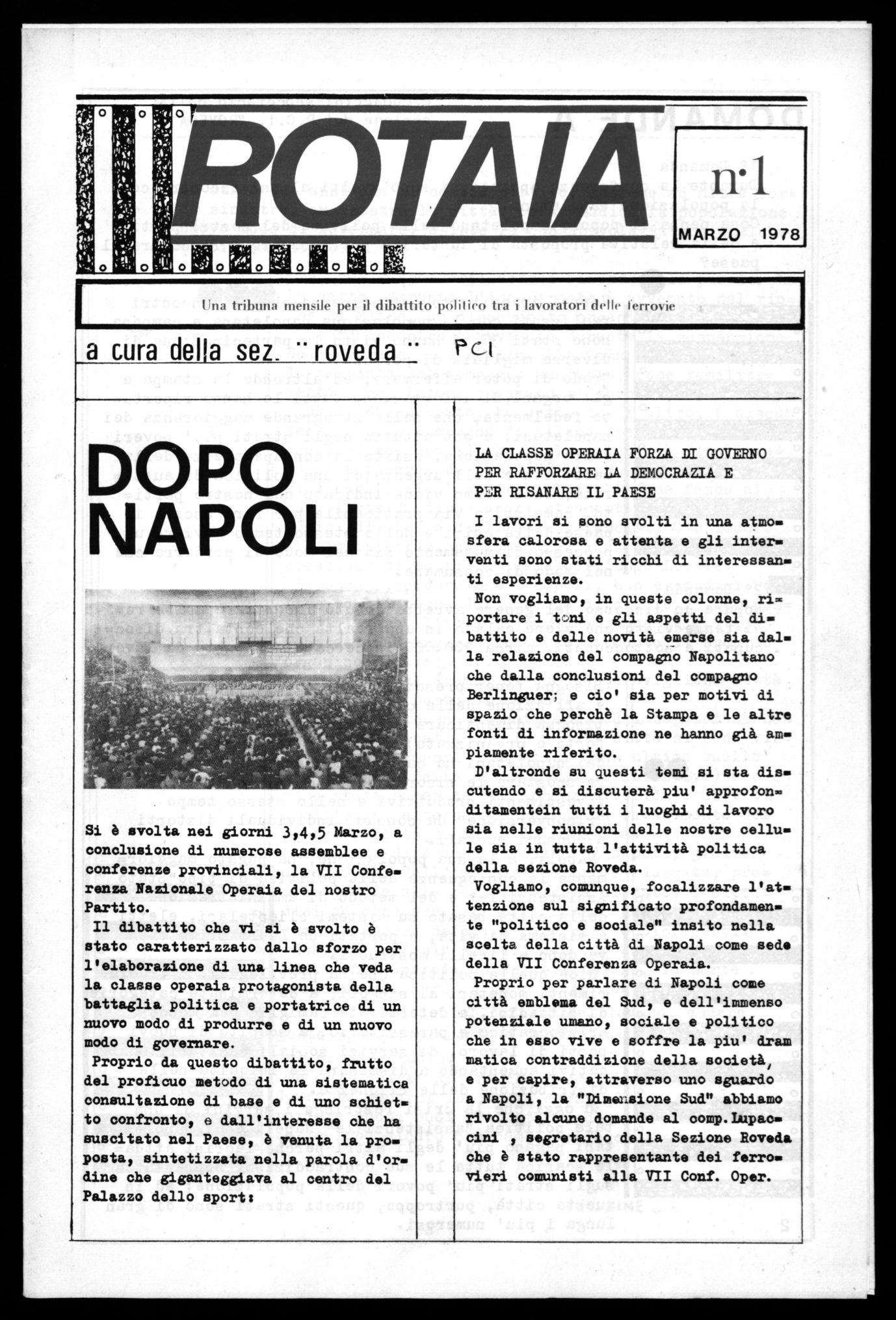 una tribuna mensile per io sviluppo dei dibattito politico tra i ferrovieri della sez: P. C. I . "ROVEDA"