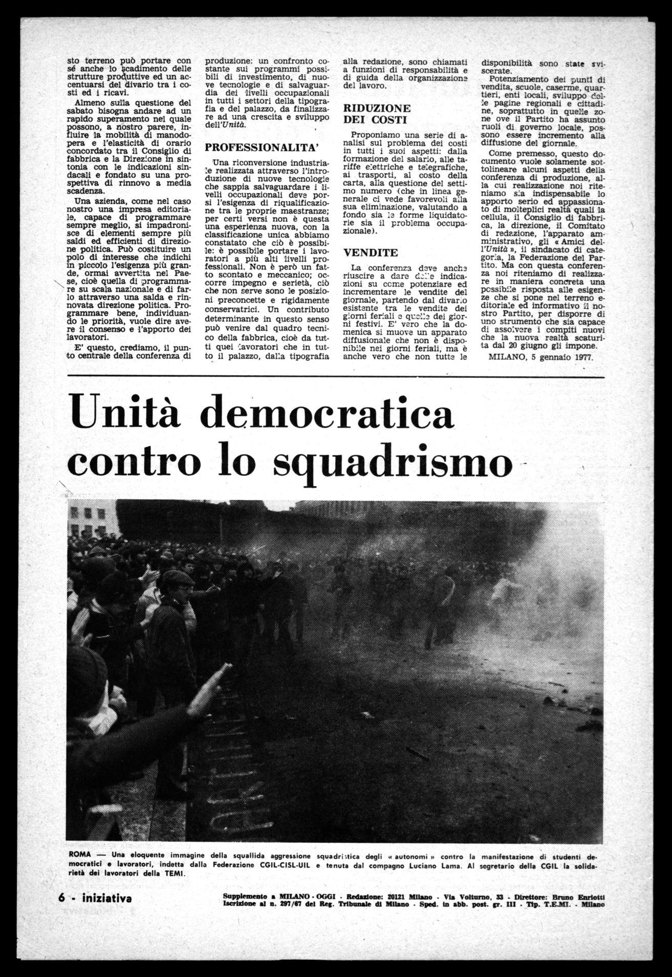 Non servono, quindi, a nulla le diatribe di coloro che per logica di partito o di gruppo, o peggio, per ragioni personali, vogliono mettere sullo stesso piano di Rizzoli e della DC il PCI e l'Unità. E' un regalo troppo grcsso fatto alle forze della conservazione, che indebolisce il nostro fronte e disarma i lavoratori. E' un lusso che mai potremo permetterci!
