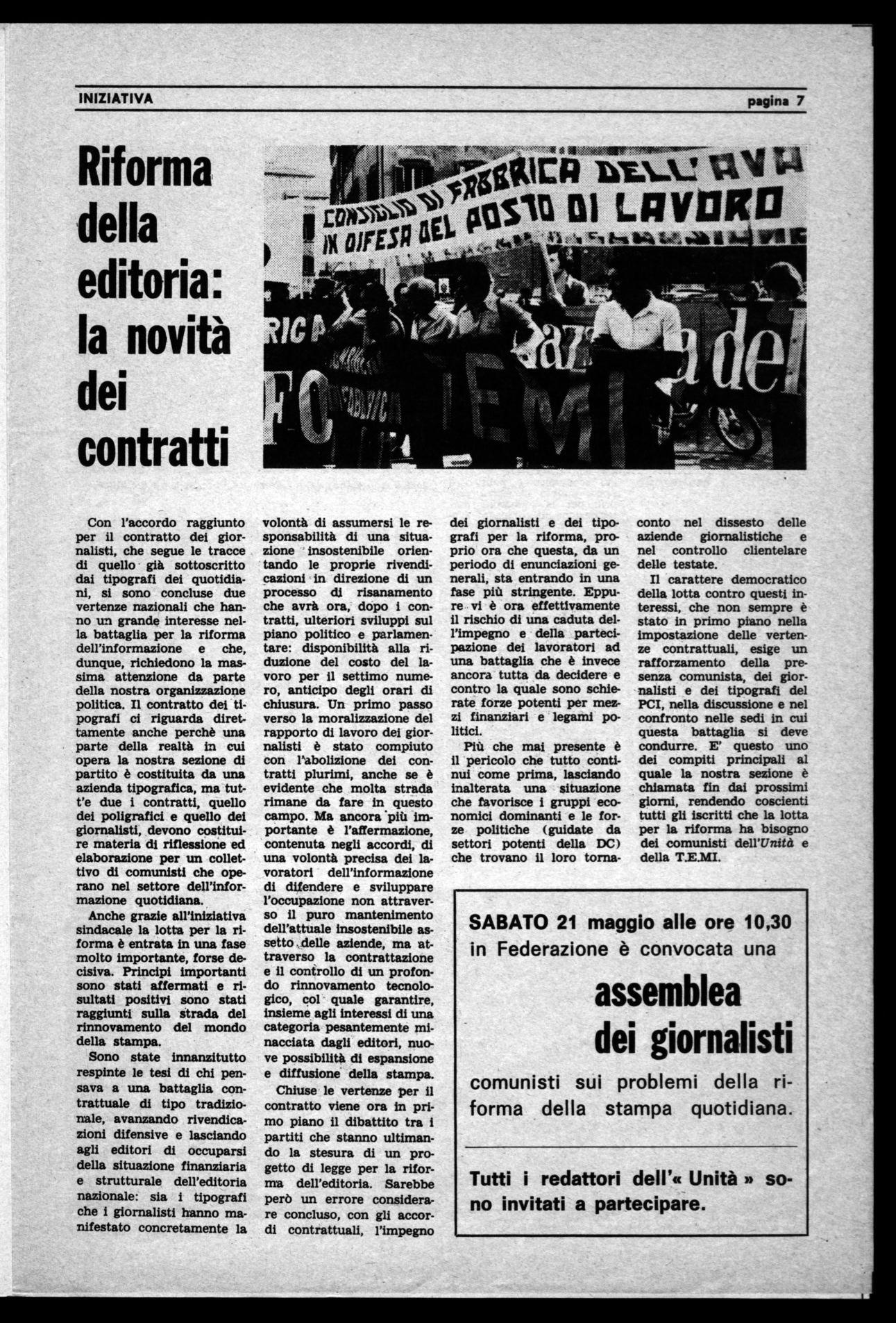 Il carattere democratico della lotta contro questi interessi, che non sempre è stato in primo piano nella impostazione delle vertenze contrattuali, esige un rafforzamento della presenza comunista, dei giornalisti e dei tipografi del PCI, nella discussione e nel confronto nelle sedi in cui questa battaglia si deve condurre. E' questo uno dei compiti principali al quale la nostra sezione è chiamata fin dai prossimi giorni, rendendo coscienti tutti gli iscritti che la lotta per la riforma ha bisogno dei comunisti dell'Unità e della T.E.MI.