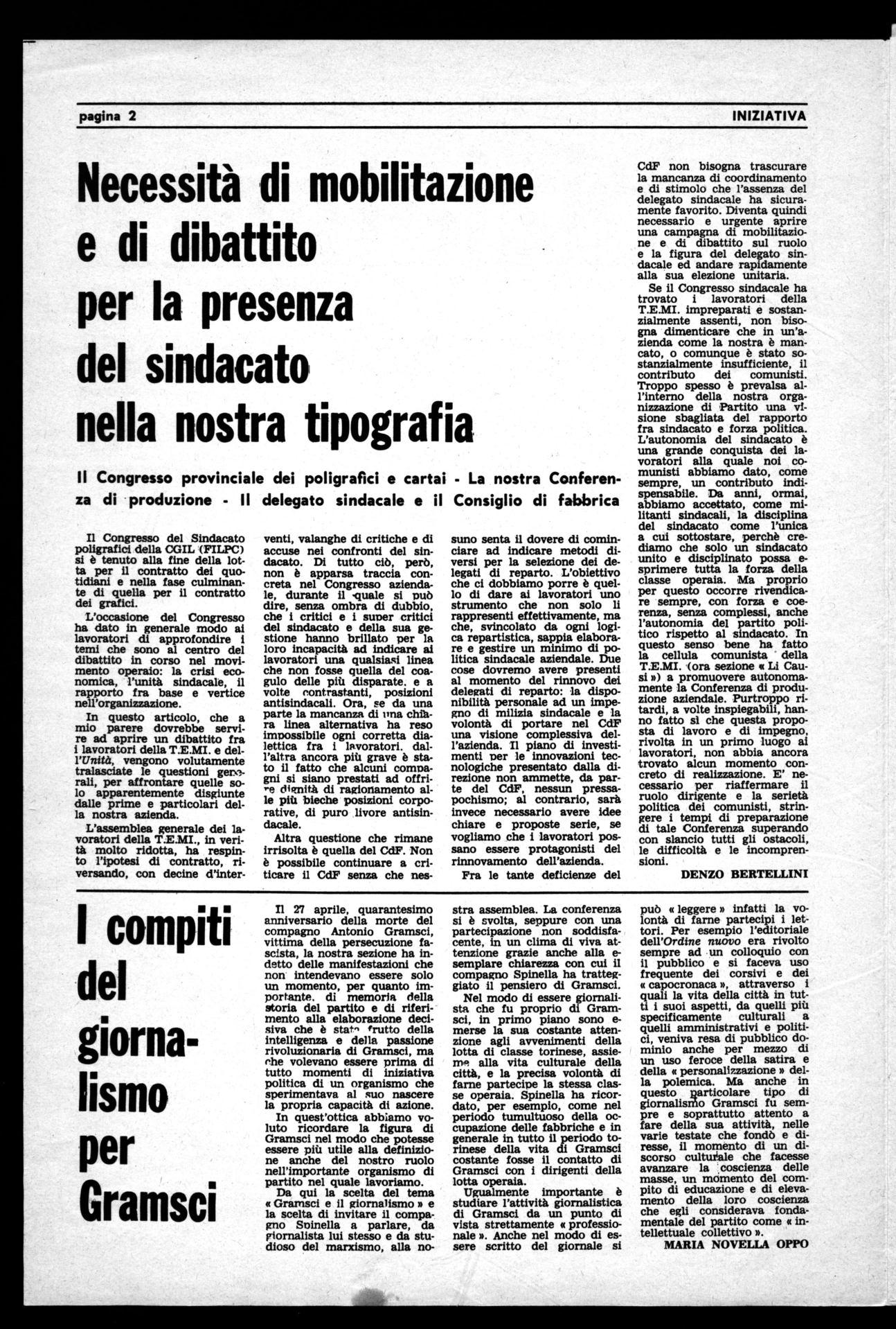 Con il numero uscito in occasione del congresso costitutivo della sezione, Iniziati. va è diventato periodico della organizzazione di partito dell'Unità e della T.E.MI. allargando così i suoi orizzonti ed il suo spazio politico e affermando il suo carattere di «palestra» aperta al confronto delle idee e alle proposte.