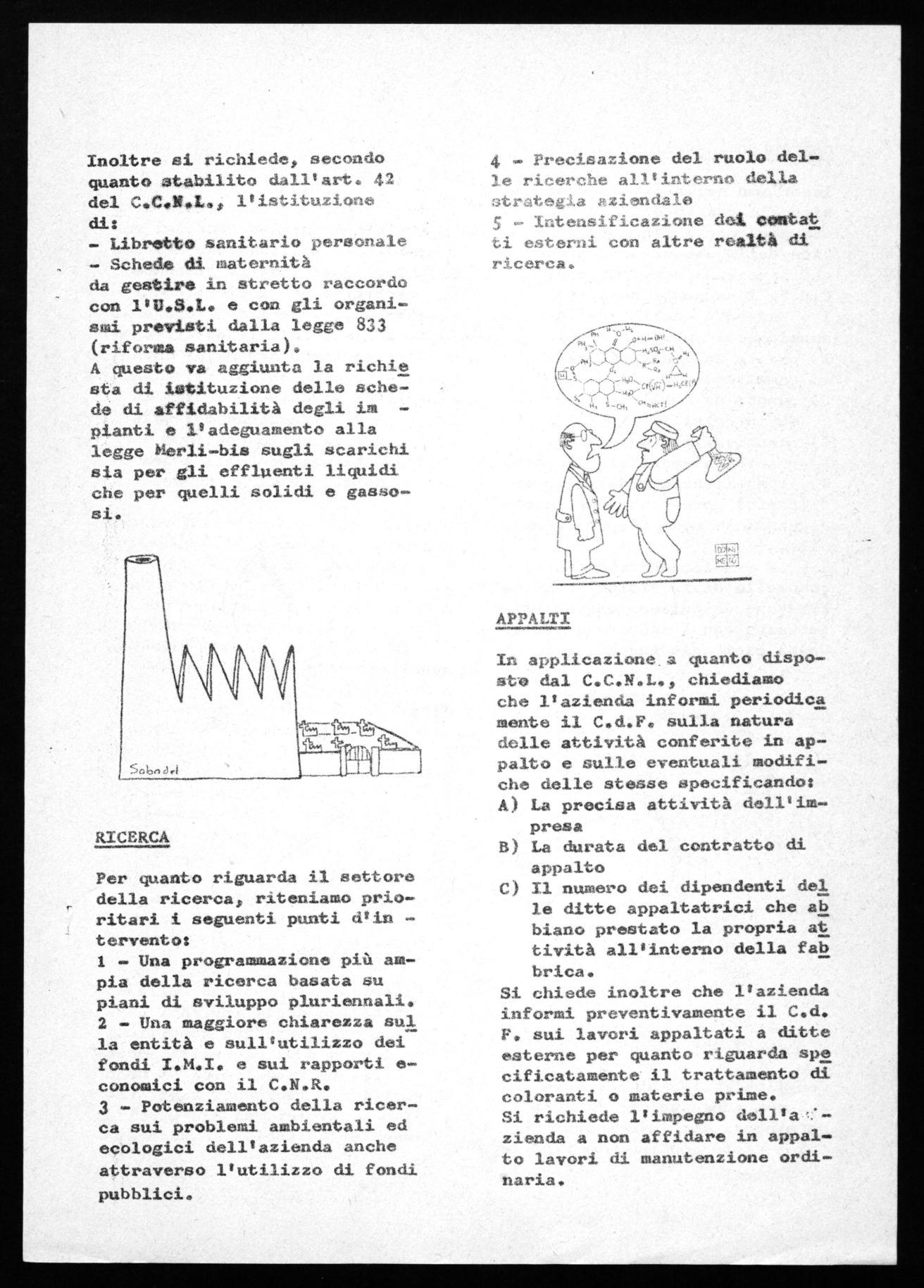 Si chiede inoltre che l'azienda informi preventivamente il C.d. F. sui lavori appaltati a ditte esterne per quanto riguarda spe cificatamente il trattamento di coloranti o materie peime. Si richiede l'impegno dell'a zienda a non affidare in appalto lavori di manutenzione ordinaria.