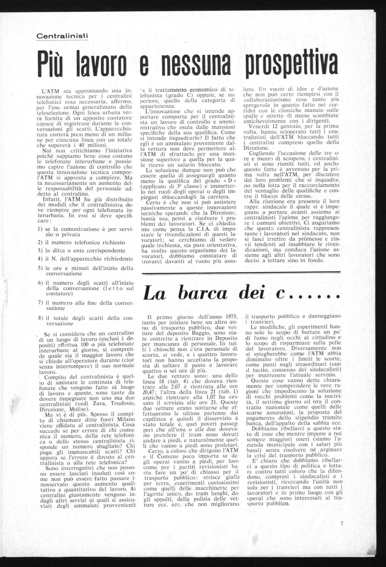 All'ATM sono due le armi che vengono usate: l'una è quella di proposte di carriera in cambio della rinuncia alla lotta; la seconda è la repressione espressa in trasferimenti (non ci siamo dimenticati del recente trasferimento del compagno Manfredi, nè di quello del compagno Pinto, nè ce lo dimenticheremo) o dei mancati trasferimenti, sospesi all'ultima ora per ragioni politiche.