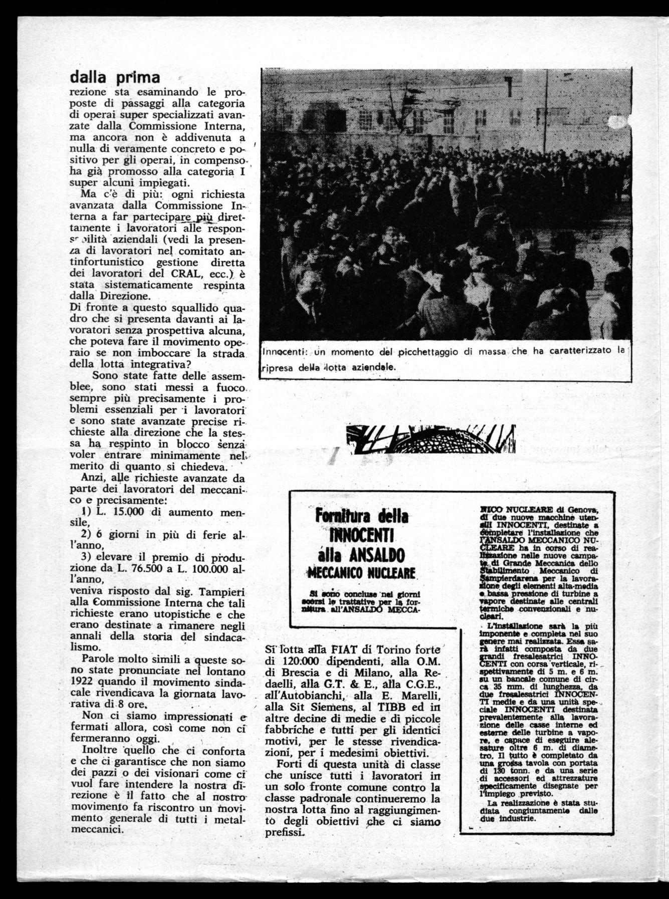 Ma c'è di più: ogni richiesta avanzata dalla Commissione Interna a far parteciparej3kù direttamente i lavoratori alle respons- Alità aziendali (vedi la presenza di lavoratori nel comitato antinfortunistico gestione diretta dei lavoratori del CRAL, ecc.) è stata sistematicamente respinta dalla Direzione.