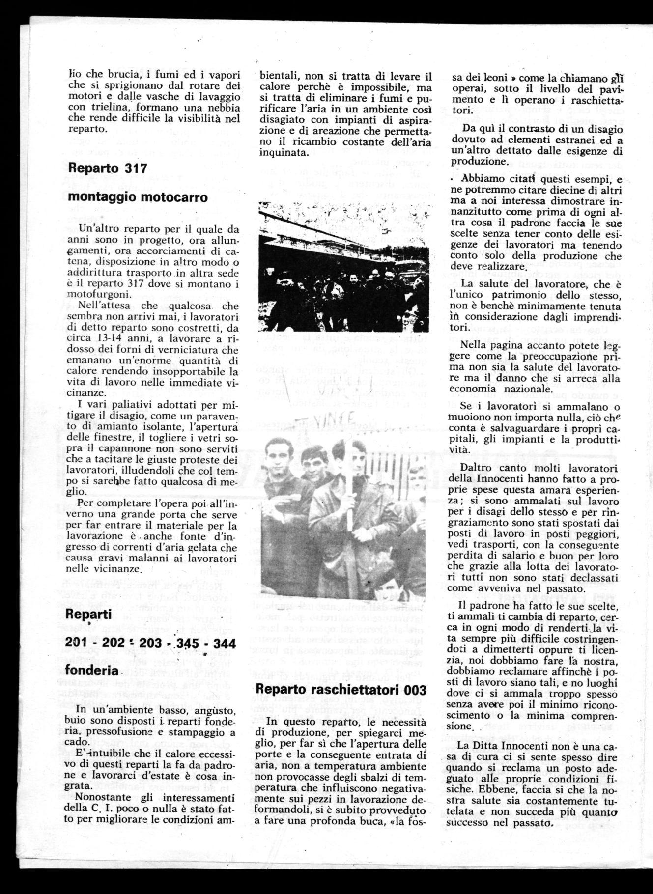 Ora d viene da domandarci se la Direzione della Innocenti che con tanto accanimento sguinzaglia le guardie per i vari reparti per colpire con multe, punizioni, ammonimenti, sospensioni e magari licenziamenti i lavoratori che stanno facendo il loro dovere e sono rei soltanto di essersi lavati le mani cinque minuti prima del fischio della sirena, o trovati al gabinetto a leggere il giornale, .o che