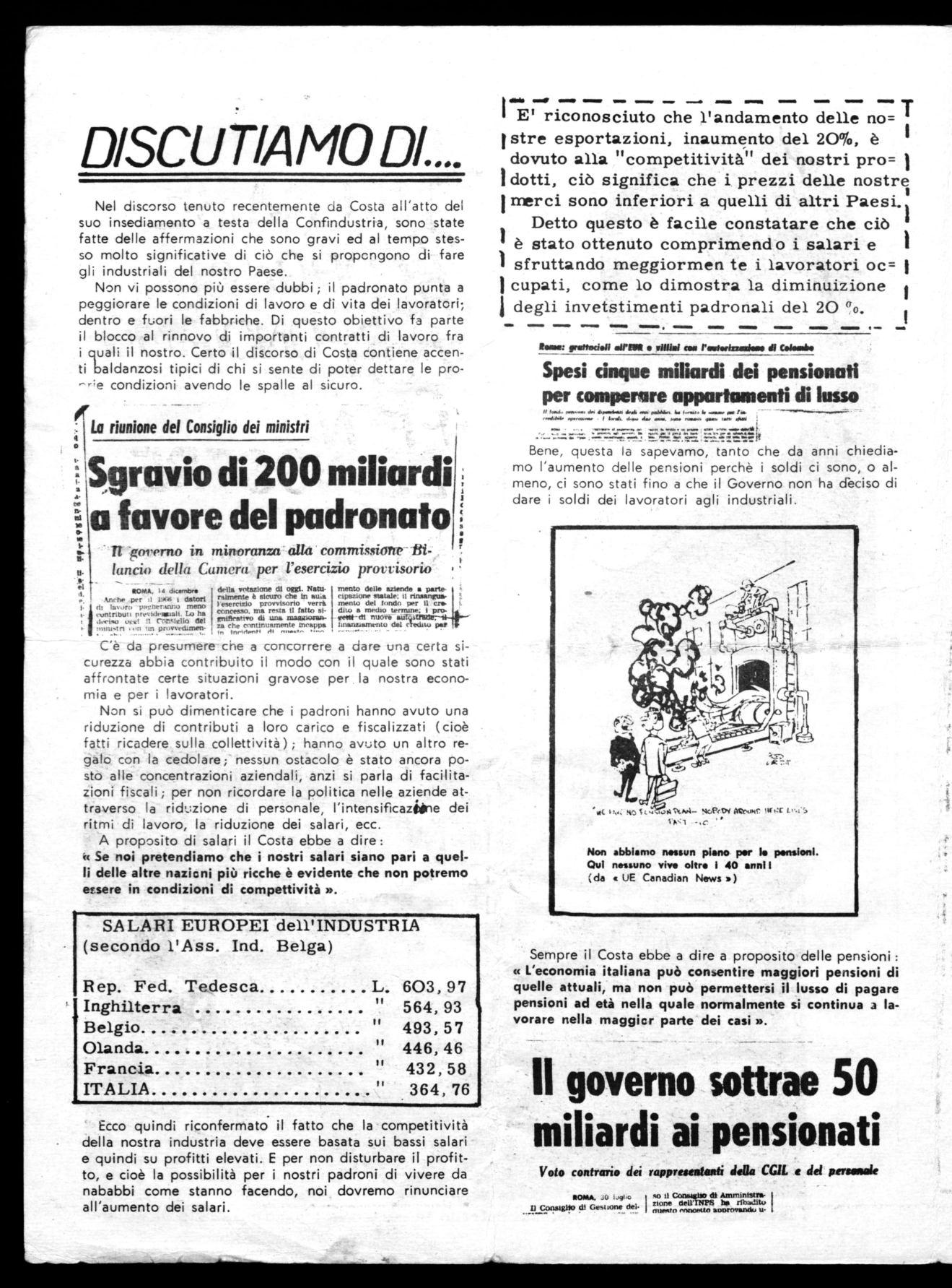 Una amara considerazione è quella che i lavoratori hanno nel constatare che, l'associazione dei piccoli industriali ha abbandonato laa-pósizione della CONFINDUSTRIA mentre il governo la sostiene;infatti le industrie a partecipazione statale sono ferme nella loro intransigenza assieme alle private ed ancora, nel discorso al Parlamento all'atto della formazione del governo, l'on. Moro ebbe a ribadire ciò che già disse a Bari, ossia... tenete duro, non concedete niente ai lavoratori.