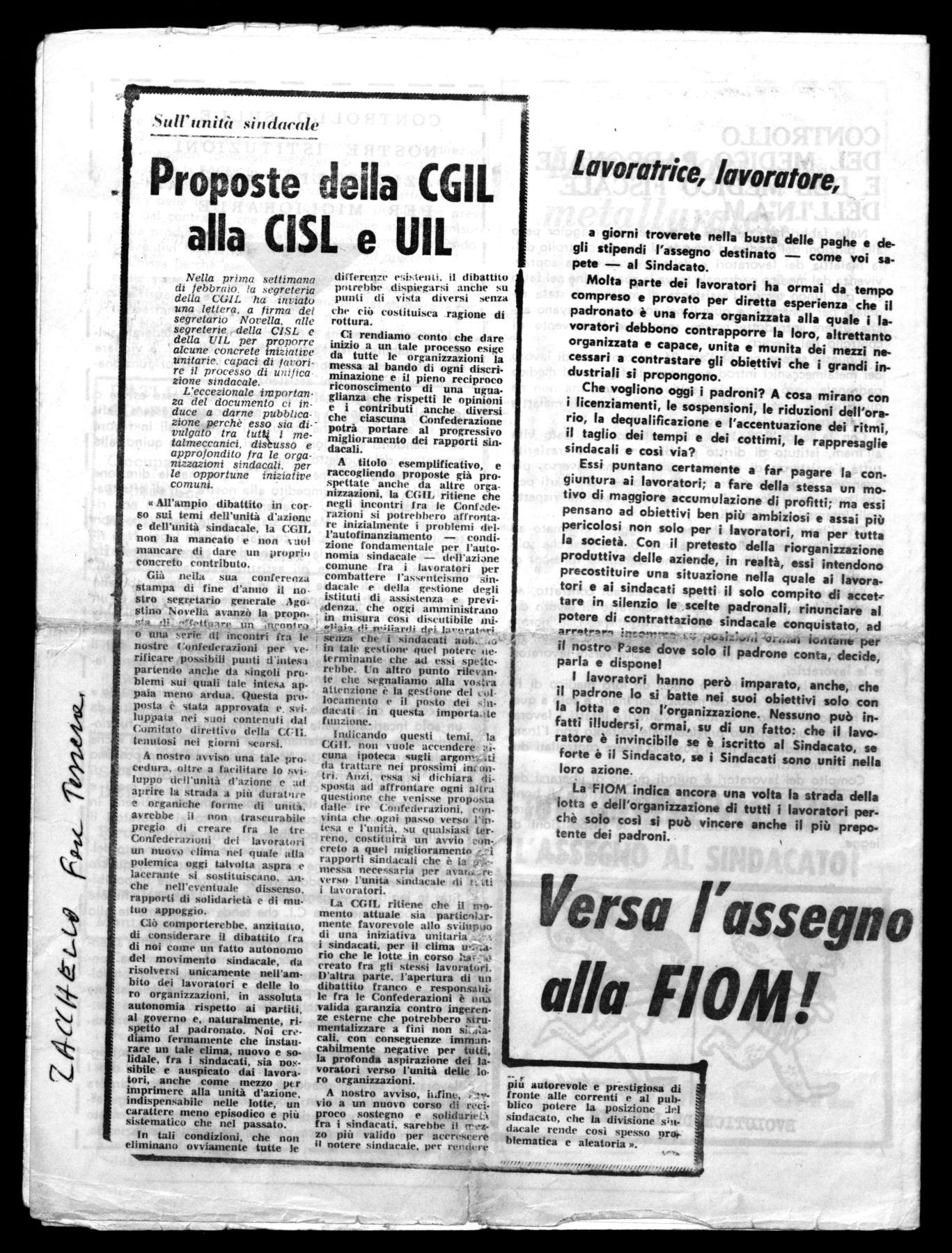 Nella prima settimana di febbraio. la segreteria della CC;IL ha inviato una lettera, a firma del segretario Novella, alle segreterie . della CISL e della UIL per proporre alcune concrete iniziative unitarie. capaci di favorire il processo di unificazione sindacale.