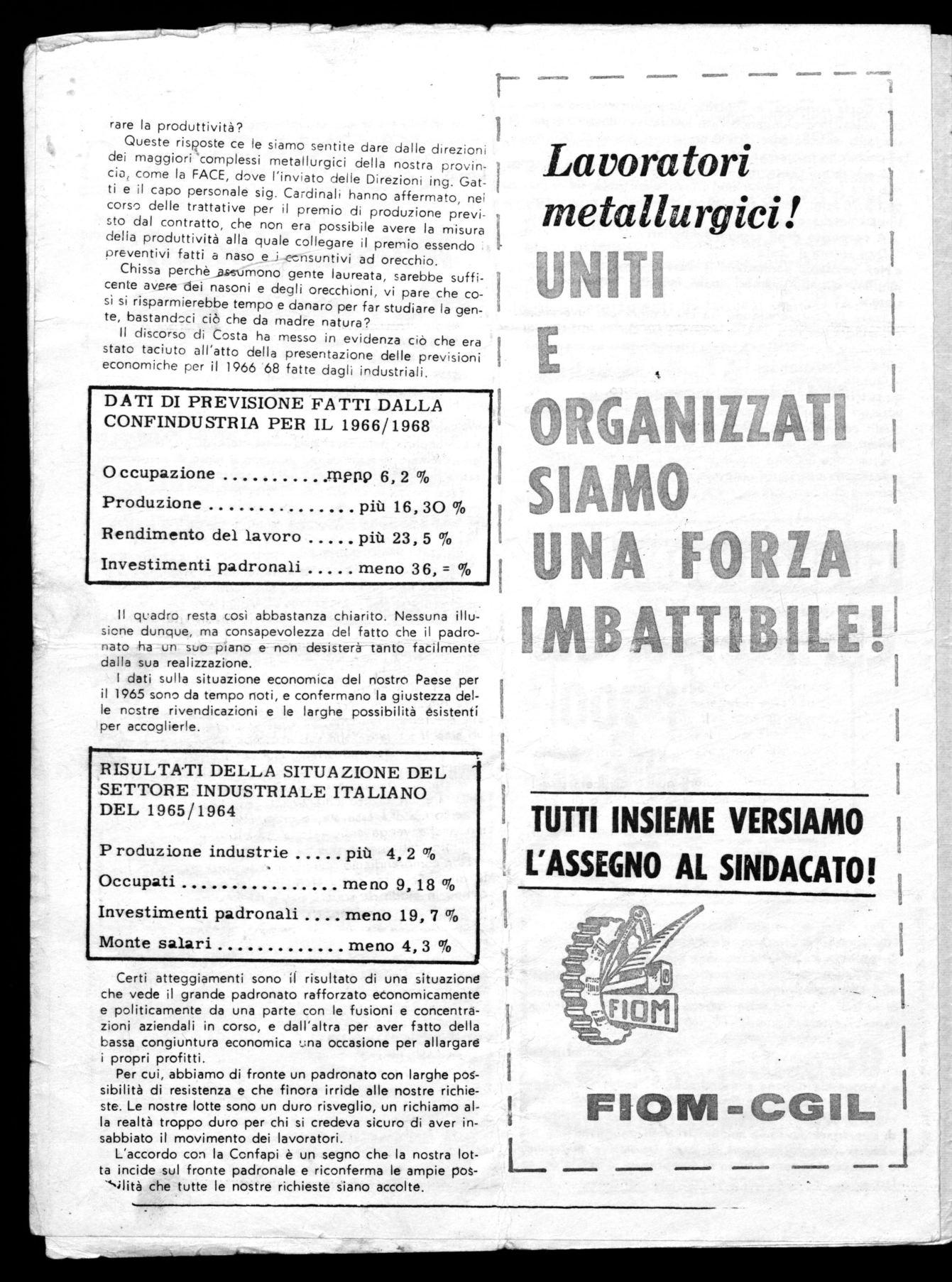 Molta parte dei lavoratori ha ormai da tempo compreso e provato per diretta esperienza che il padronato è una forza organizzata alla quale i lavoratori debbono contrapporre la loro, altrettanto organizzata e capace, unita e munita dei mezzi necessari a contrastare gli obiettivi che i grandi industriali si prepongono.