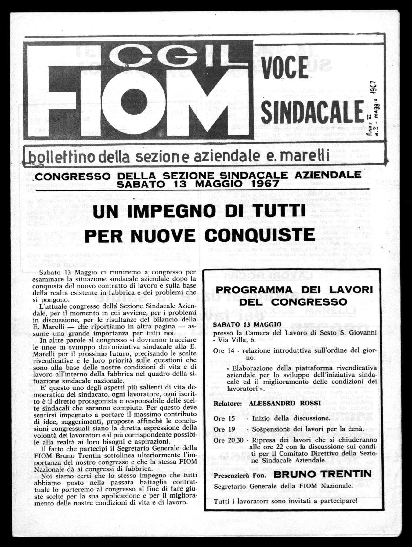 In altre parole al congresso si dovranno tracciare le Linee ai sviluppo dell iniziativa sindacale alla E. Marelli per il prossimo futuro, precisando le scelte rivendicative e le loro priorità sulle questioni che sono alla base delle nostre condizioni di vita e di lavoro all'interno della fabbrica nel quadro della situazione sindacale nazionale.