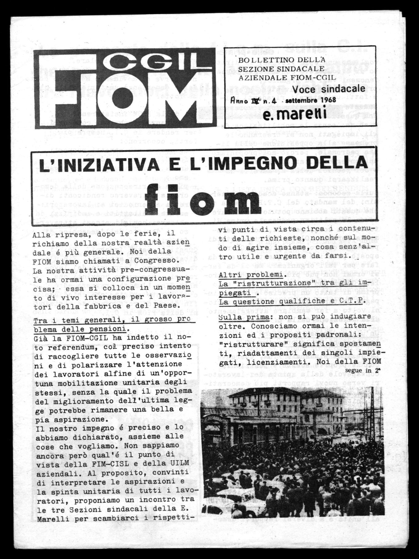 Il nostro impegno é preciso e lo abbiamo dichiarato, assieme alle cose che vogliamo. Non sappiamo ancora però qual'é il punto di vista della FIM-CISL e della UILM aziendali. Al proposito, convinti di interpretare le aspirazioni e la spinta unitaria di tutti i lavoratori, proponiamo un incontro tra le tre Sezioni sindacali della E. IO, Marelli per scambiarci i rispetti-