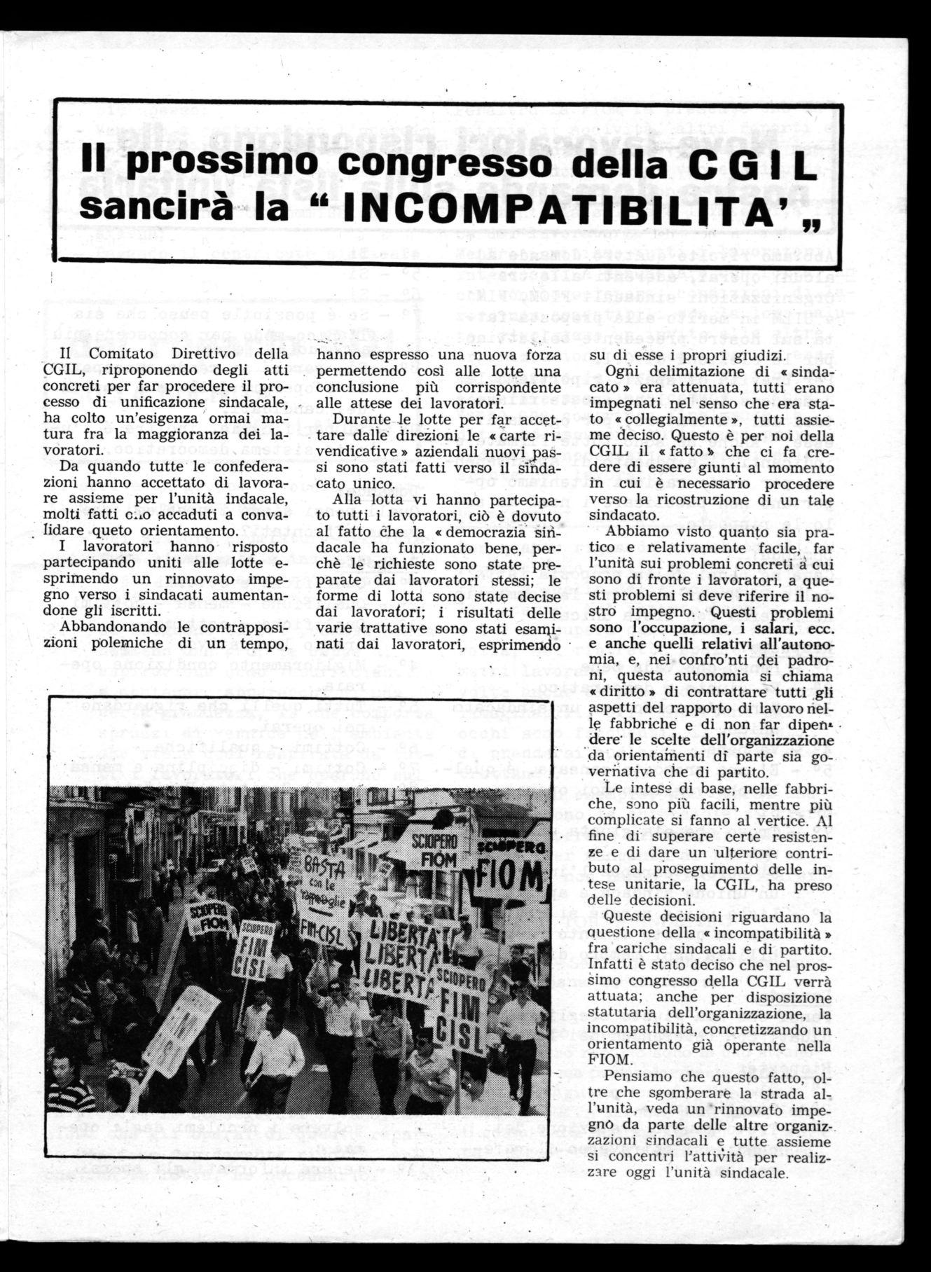 Noi della FIOM insisteremo! siamo convinti che mai cole oggi per rendere le C.I. sempre più forti, oocorrono: diversi e più stretti rapporti fra C.I. e lavoratori; Unità e rinnovamento dell'organismo ; - piena estrinsecazione della democrazia attraverso rendiconti diretti e periodici ai lavoratori: scelte - dibattiti e indirizzi da attuarsi con gli stessi attraverso il diritto dell'assemblea di fabbrica.