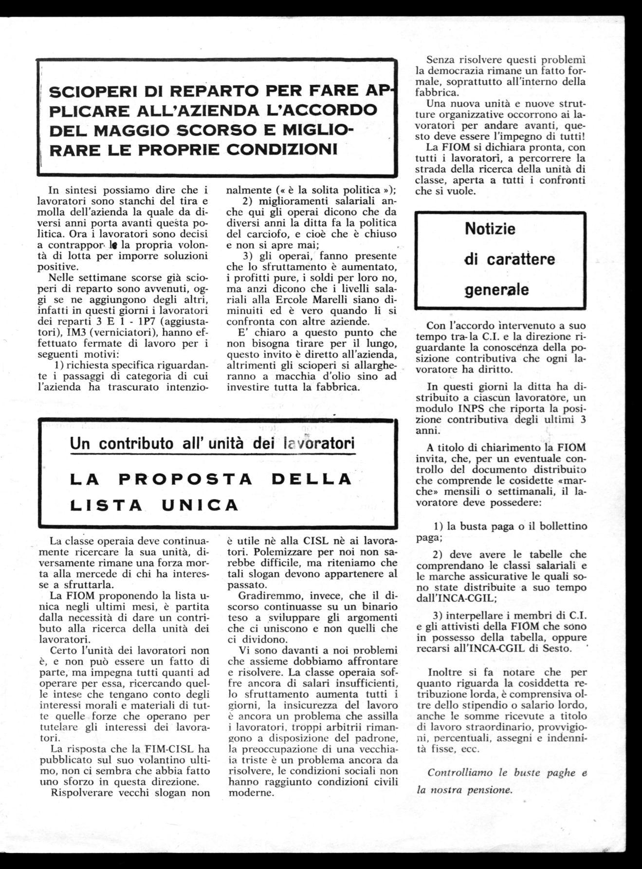 La realizzazione di questi obiettivi richiede un forte impegno di lotta da parte di tutti i lavoratori ed in primo luogo di ogni Sezione Sindacale Aziendale qualé ór gano di direzione di tutta l'attività sindacale nella fabbrica e, contemporaneamente, quale strumento propulsore della vita democratica del sindacato intesa come unione dei lavoratori per la difesa e il miglioramento delle loro condizioni di vita e di lavoro.