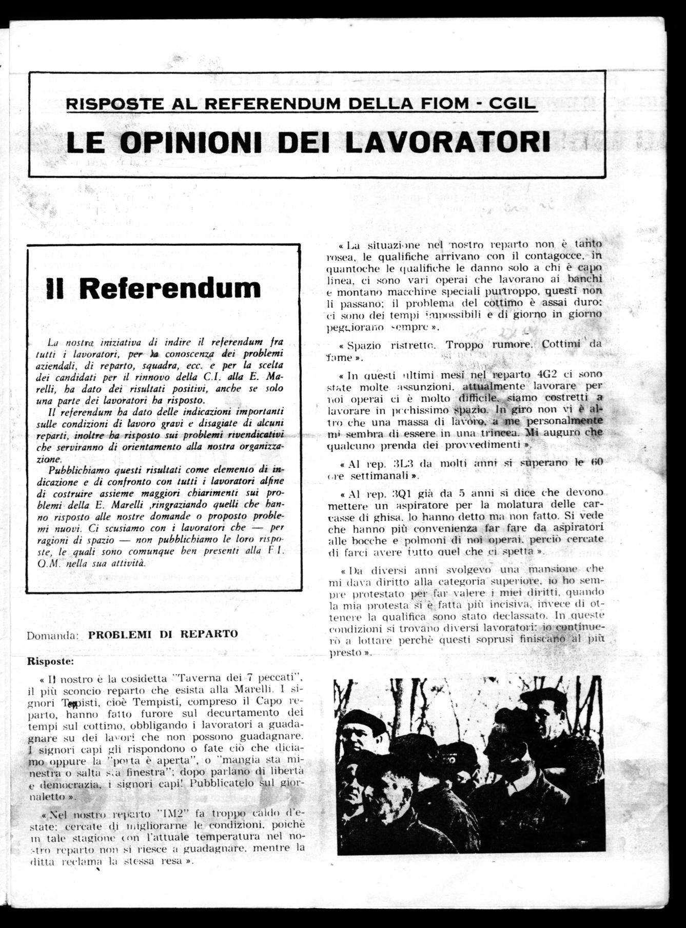 La nostra iniziativa di indire il referendum fra tutti i lavoratori, per la conoscenza dei problemi aziendali, di reparto, squadra, ecc. e per la scelta dei candidati per il rinnovo della C.I. alla E. Marelli, ha dato dei risultati positivi, anche se solo una parte dei lavoratori ha risposto.