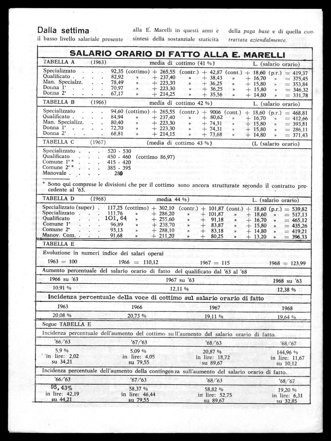 Dalla settima alla É. Marelli in questi anni è della paga base e di quella conil basso livello salariale presente sintesi della sostanziale staticità trattata aziendalmente.