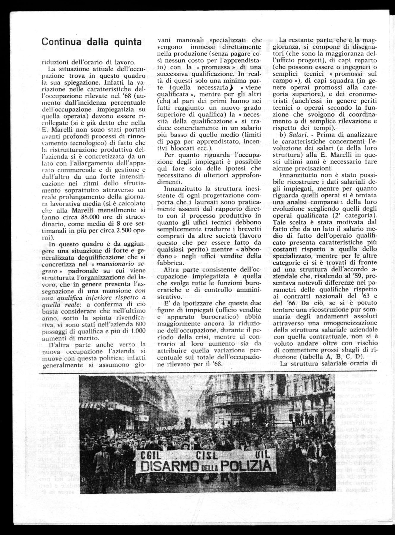 In tal modo le scelte padronali, nella misura in cui tesero a far pagare alla classe operaia le proprie contraddizioni, lo fecero da un lato, evitando di dovere pagare i costi di un'eventuale successiva riqualificazione nell'azienda della forza-lavoro, dall'altro mentre si salvaguardavano per il futuro scaricavano un'altra parte dei costi della crisi sugli operai più qualificati attraverso processi di riqualificazione reale nel processo produttivo aziendale e forti segue in 6'.