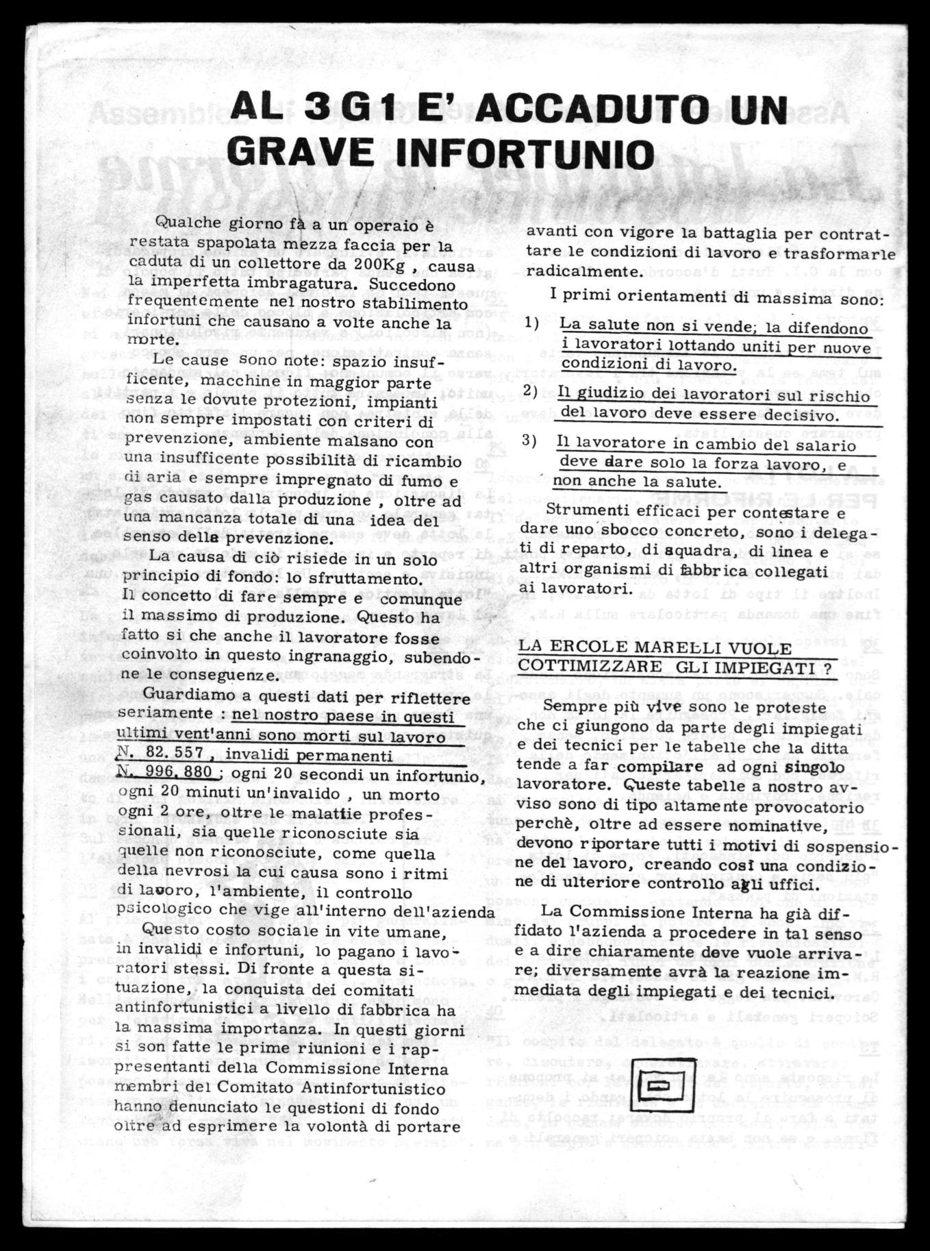 Questo costo sociale in vite umane, in invalidi e infortuni, lo pagano i lavoratori stessi. Di fronte a questa situazione, la conquista dei comitati antinfortunistici a livello di fabbrica ha la massima importanza. In questi giorni si son fatte le prime riunioni e i rappresentanti della Commissione Interna membri del Comitato Antinfortunistico hanno denunciato le questioni di fondo oltre ad esprimere la volontà di portare