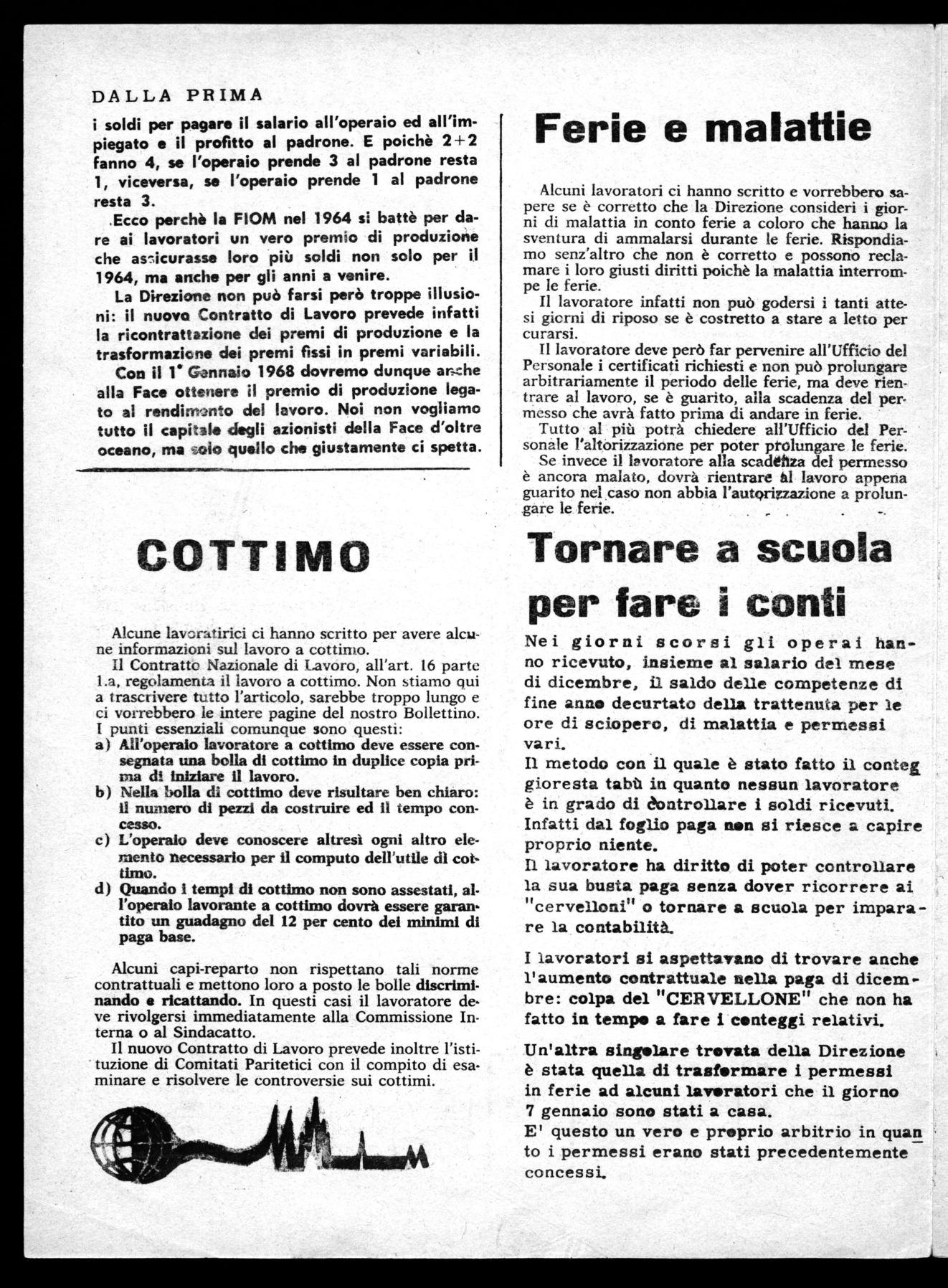 Con il 1.Gennaio 1968 dovremo dunque arche alla Face ottenere il premio di produzione legato ai rendbmnto del lavoro. Noi non vogliamo tutto il capitale degli azionisti della Face d'oltre oceano, ma quello che giustamente ci spetta.