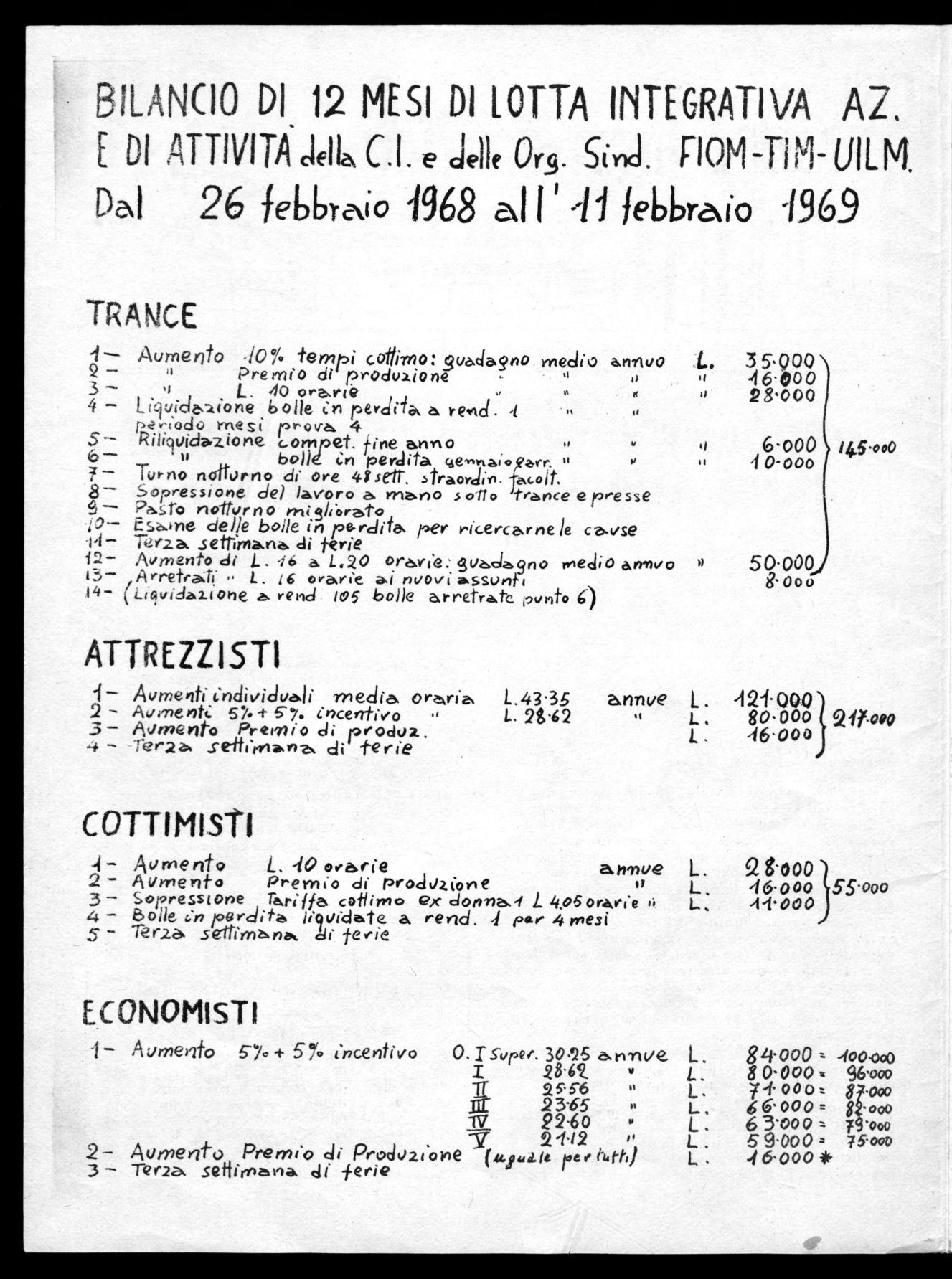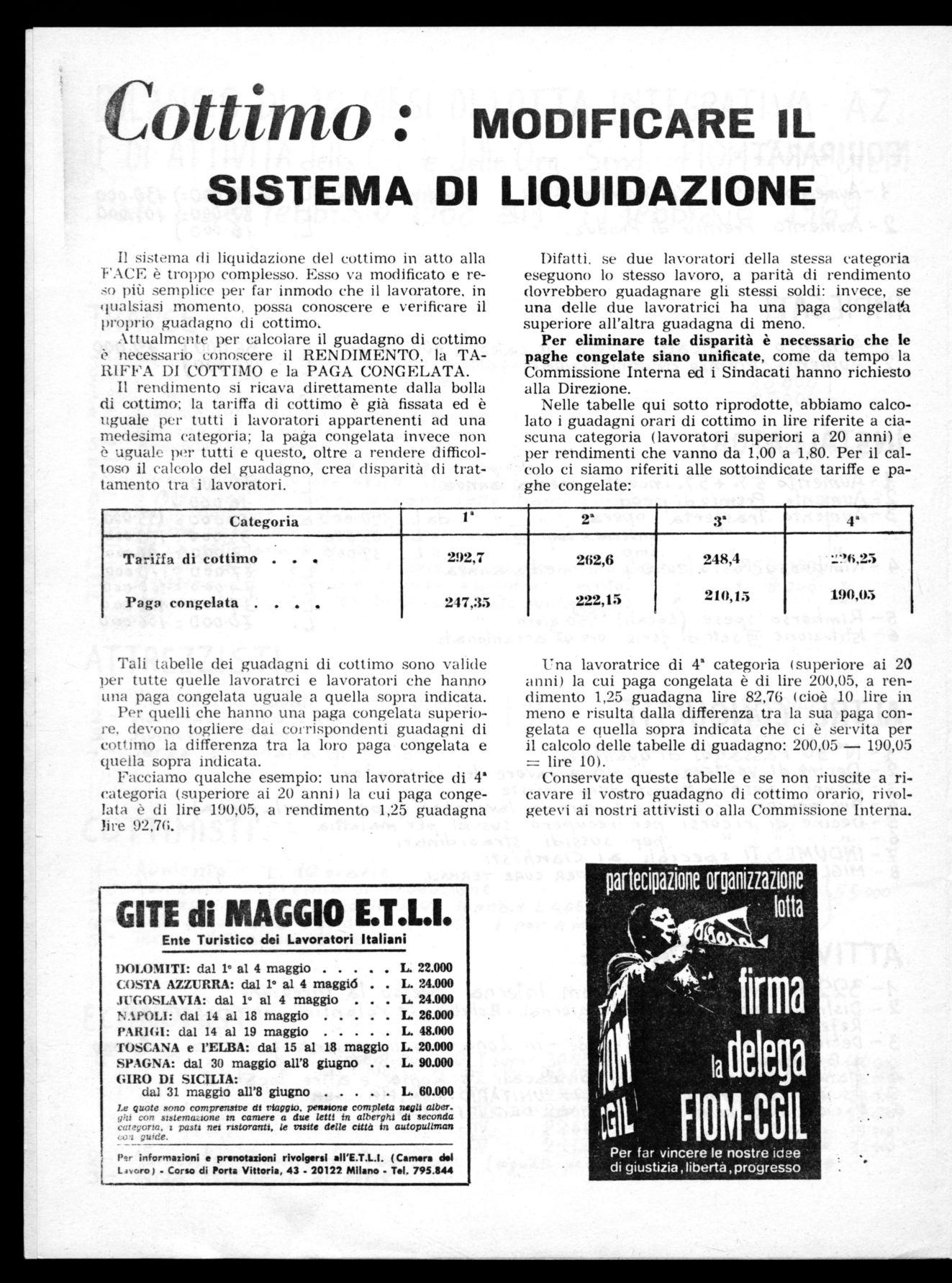 Abbiamo qui voluto' richiamare l'attenzione dei lavoratori su alcuni dei problemi più importanti. Questi ed altri problemi presenti nella fabbrica, potranno meglio essere affrontati e risolti con la collaborazione e la partecipazione di tutti i lavoratori che, con la C.I. ed i Sindacati, debbono vigilare affinchè il Contratto di Lavoro e gli accordi siano rispettati ed applicati nel modo giusto e corretto.