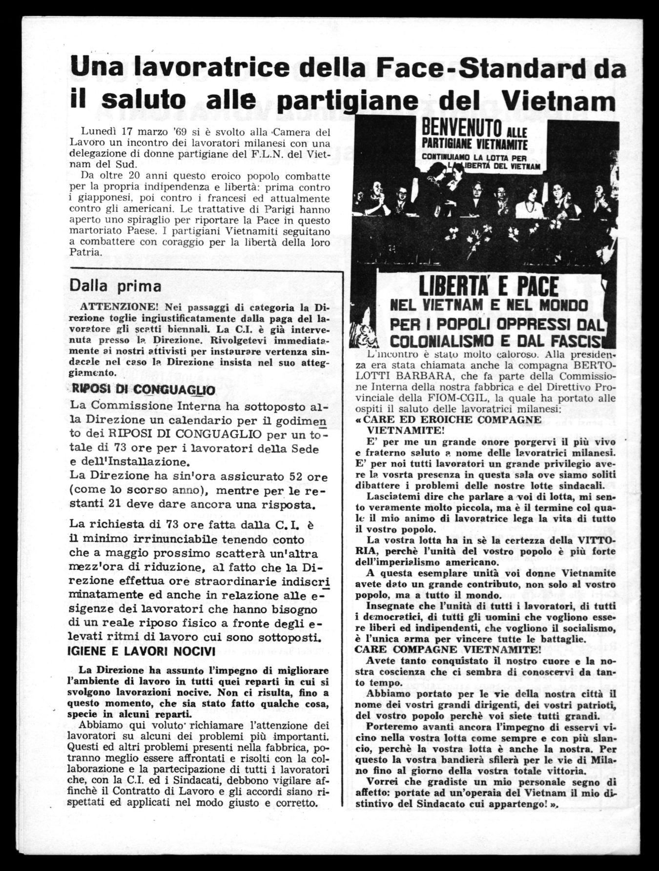 Lunedì 17 marzo '69 si è svolto alla Camera del Lavoro un incontro dei lavoratori milanesi con una delegazione di donne partigiane del F.L.N. del Vietnam del Sud.