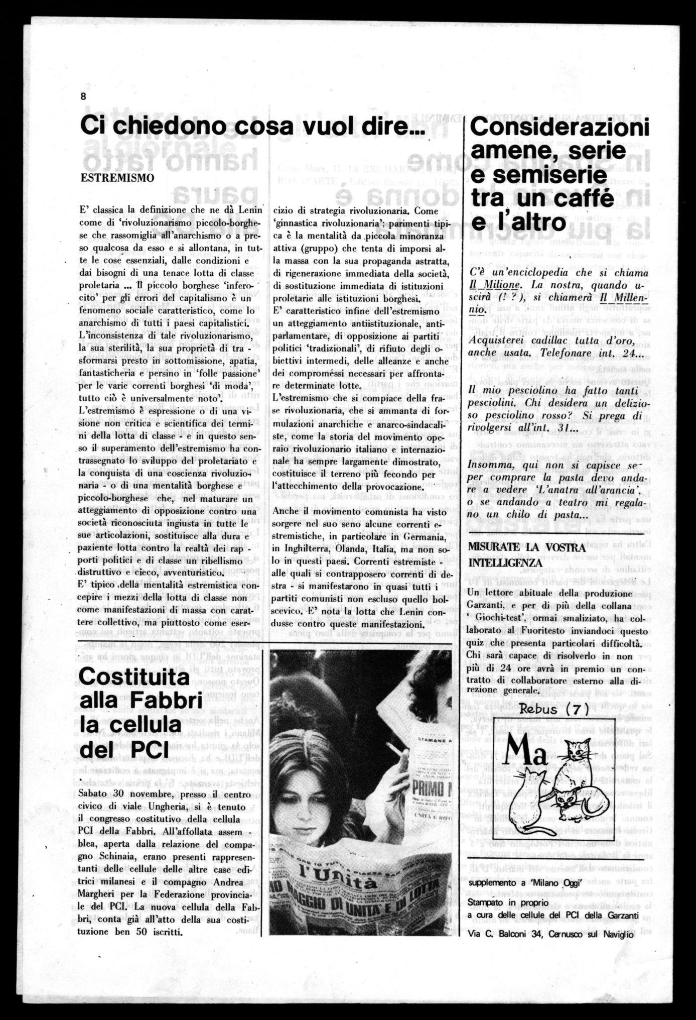 Stampato in proprio a cura delle cellule del PCI della Garzanti Via C. Balconi 34, Cernusco sul Naviglio