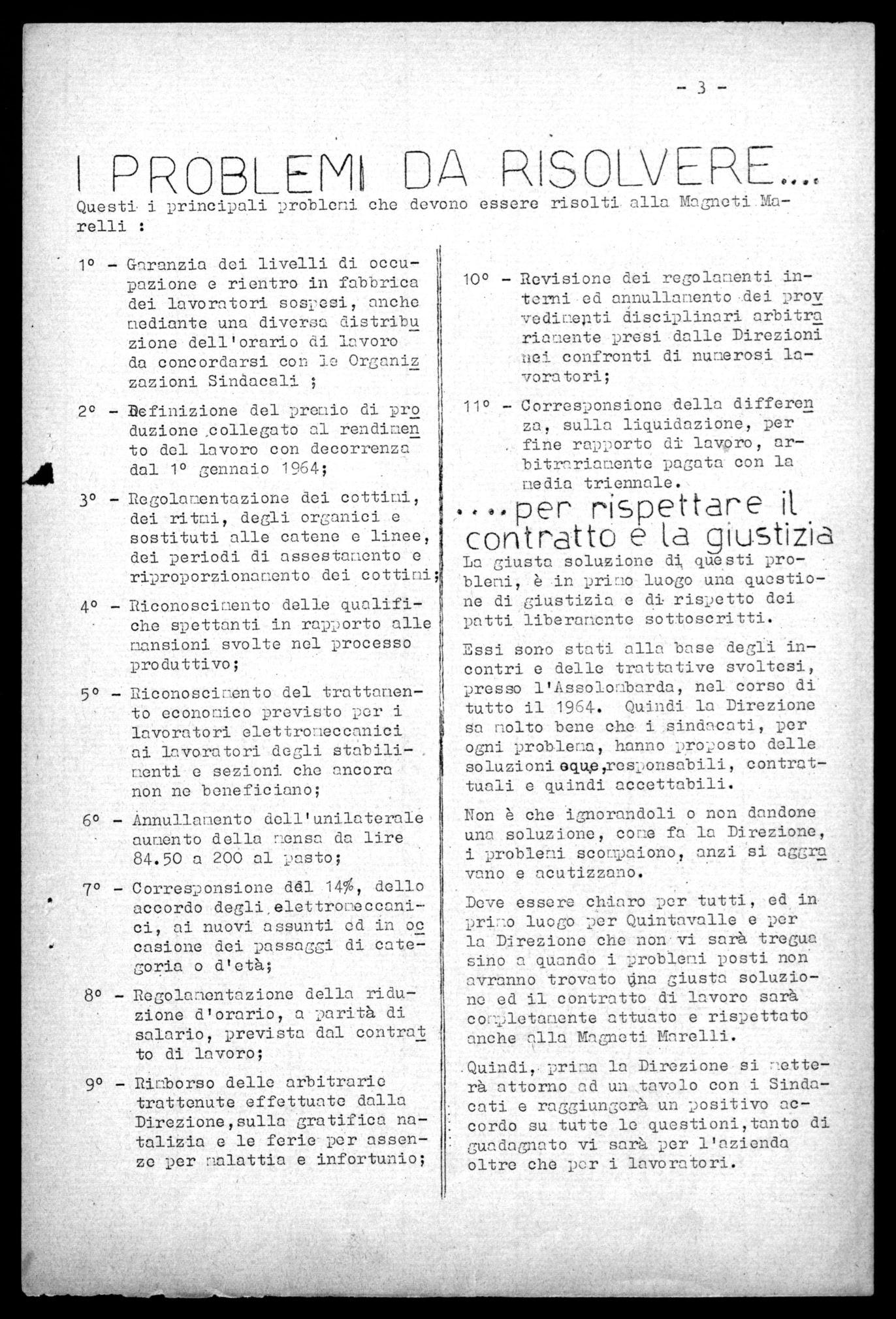 Deve essere chiaro per tutti, ed in primo luogo per Quintavalle e per la Direzione che non vi sarà tregua sino n quando i problemi posti non avranno trovato 4na giusta soluzione ed il contratto di lavoro sarà completamente attuato e rispettato • anche alla Magneti Marelli.