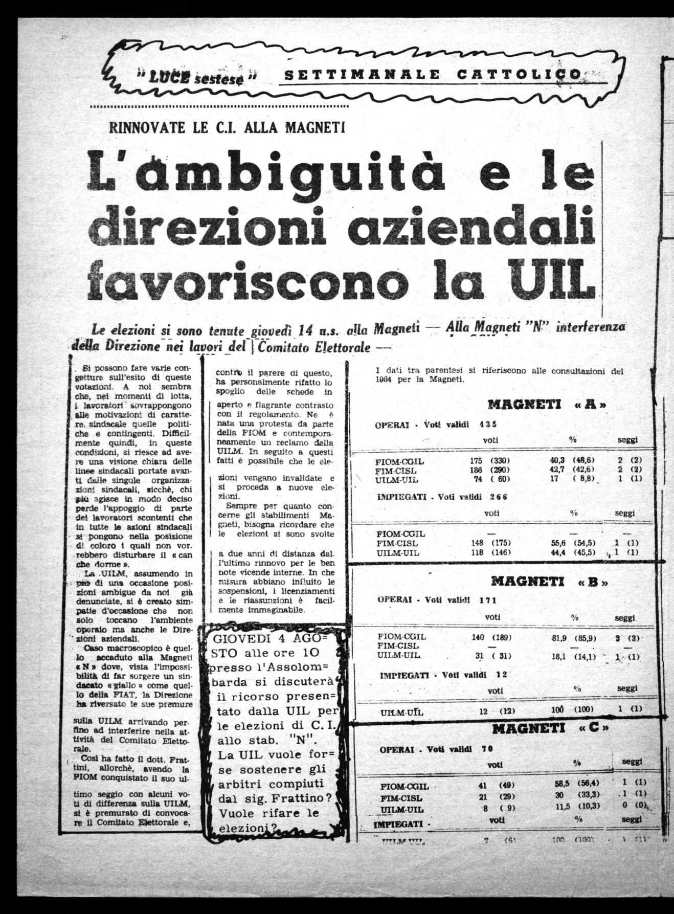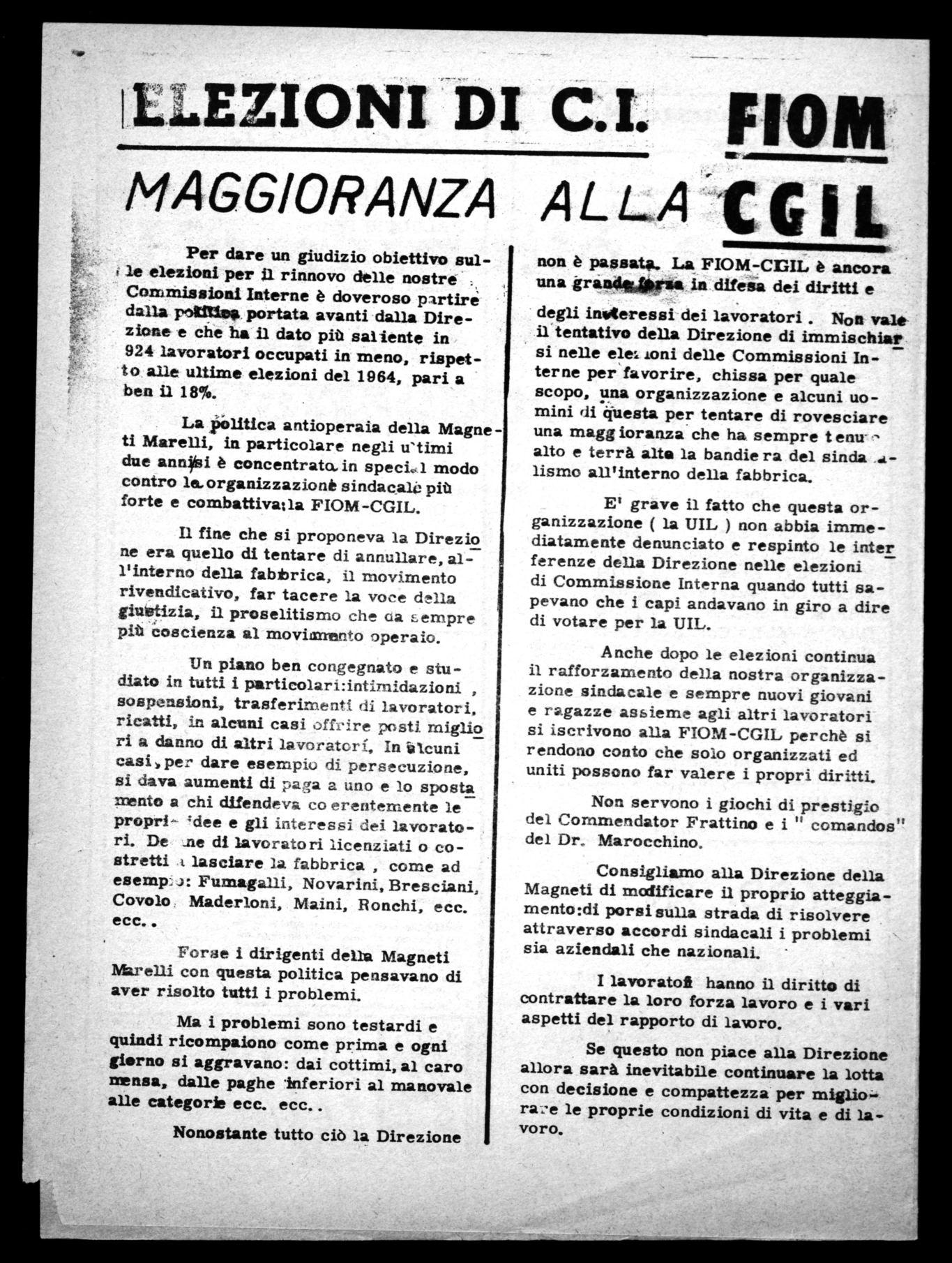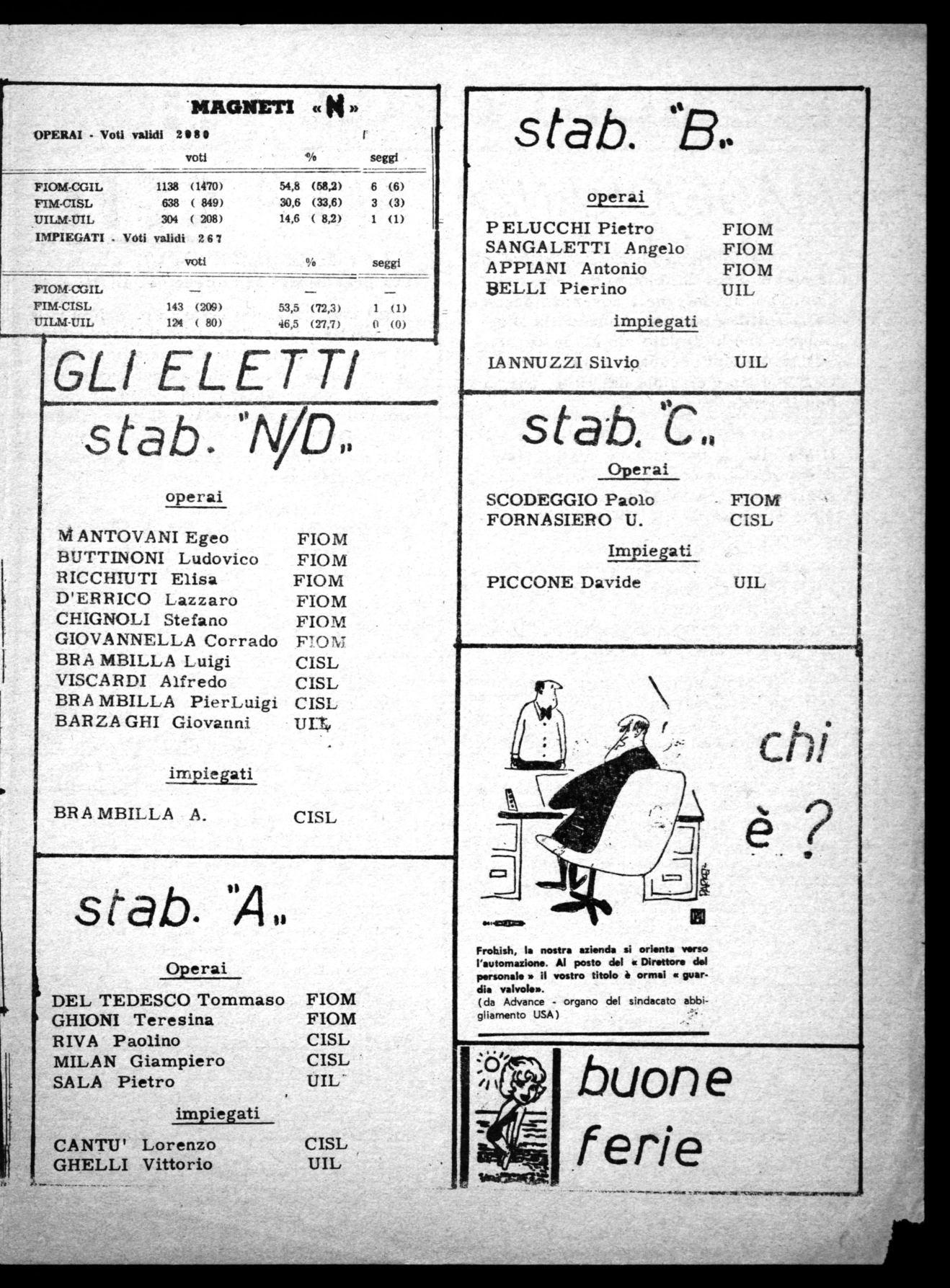 Sempre per quanto concerne gli stabilimenti Magneti, bisogna ricordare che le elezioni si sono svolte