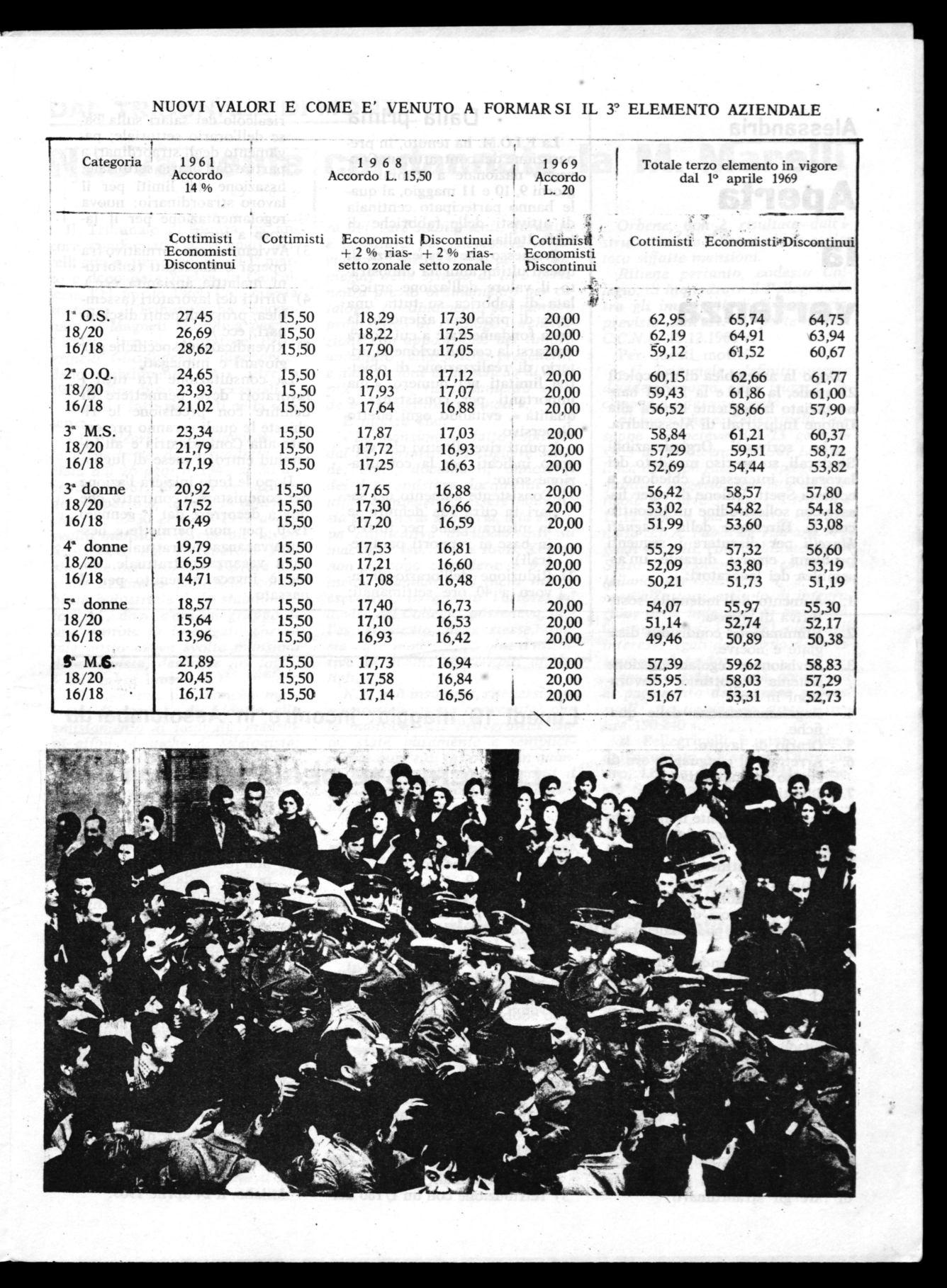 In seguito alla lotta condotta in tutta Italia, ed in particolare nel Meridione, è stato conquistato l'accordo per la eliminazione delle differenze salariali zonali. Tale accordo prevede anche il conglobamento nella paga di 41 punti di contingenza a partire dal 1° aprile scorso. Per cui, ad esempio, per i superiori a 20 anni, le nuove paghe sono: