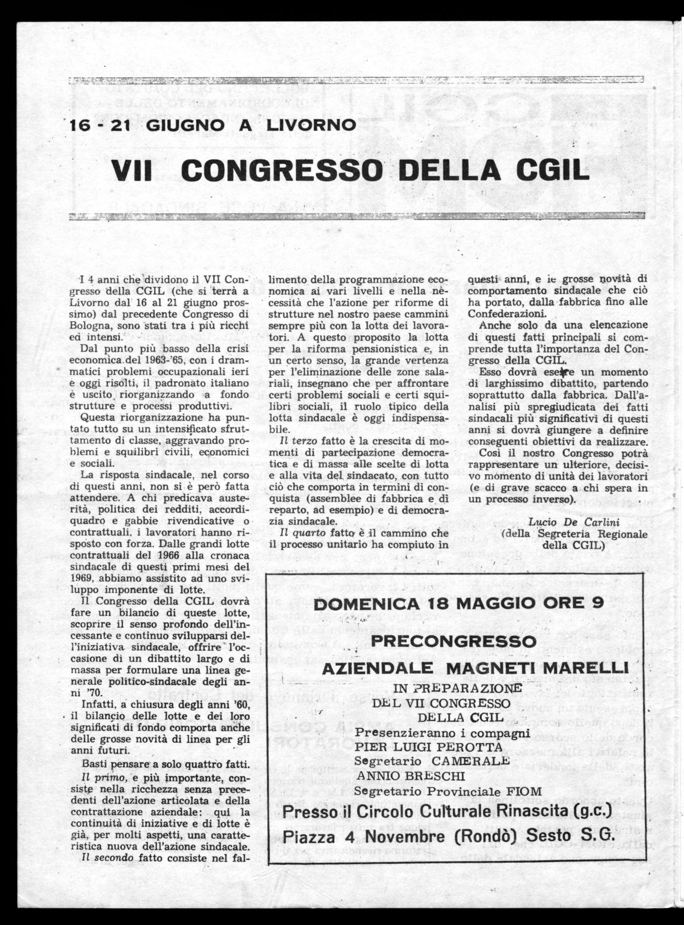 Esso dovrà eseee un momento di larghissimo dibattito, partendo soprattutto dalla fabbrica. Dall'analisi più spregiudicata dei fatti sindacali più significativi di questi anni si dovrà giungere a definire conseguenti obiettivi da realizzare.