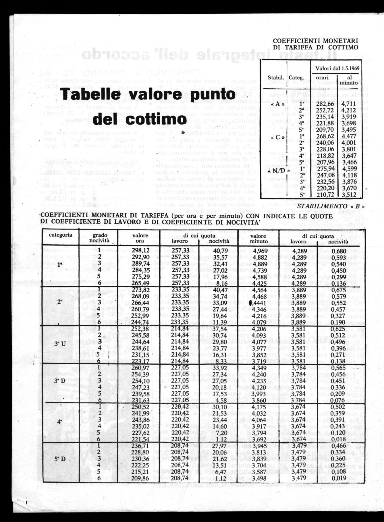I valori minuto, ai fini del calcolo del cottimo, sono quelli di cui alle tabelle allegate. Compartecipazionisti e collaborazionisti