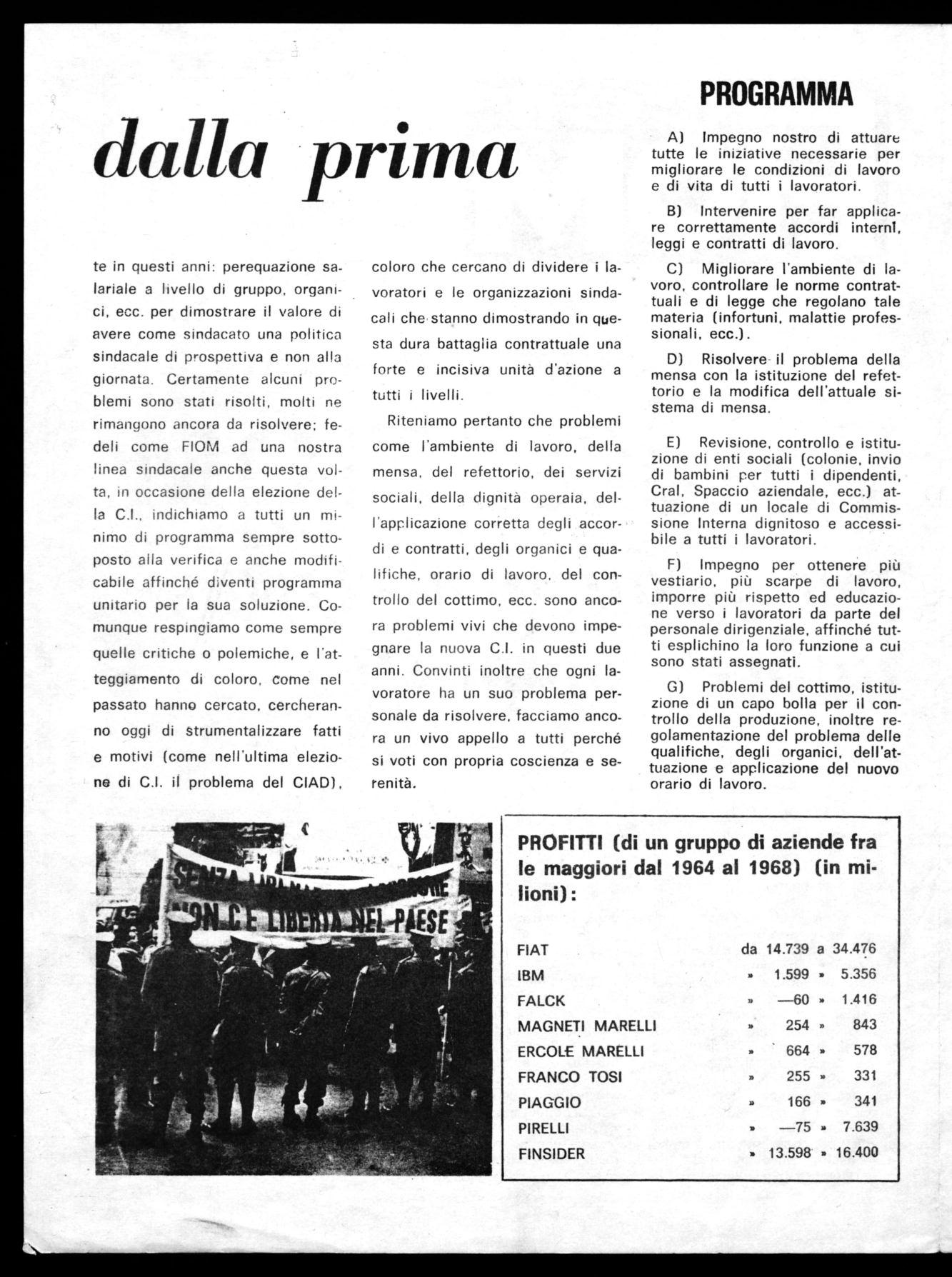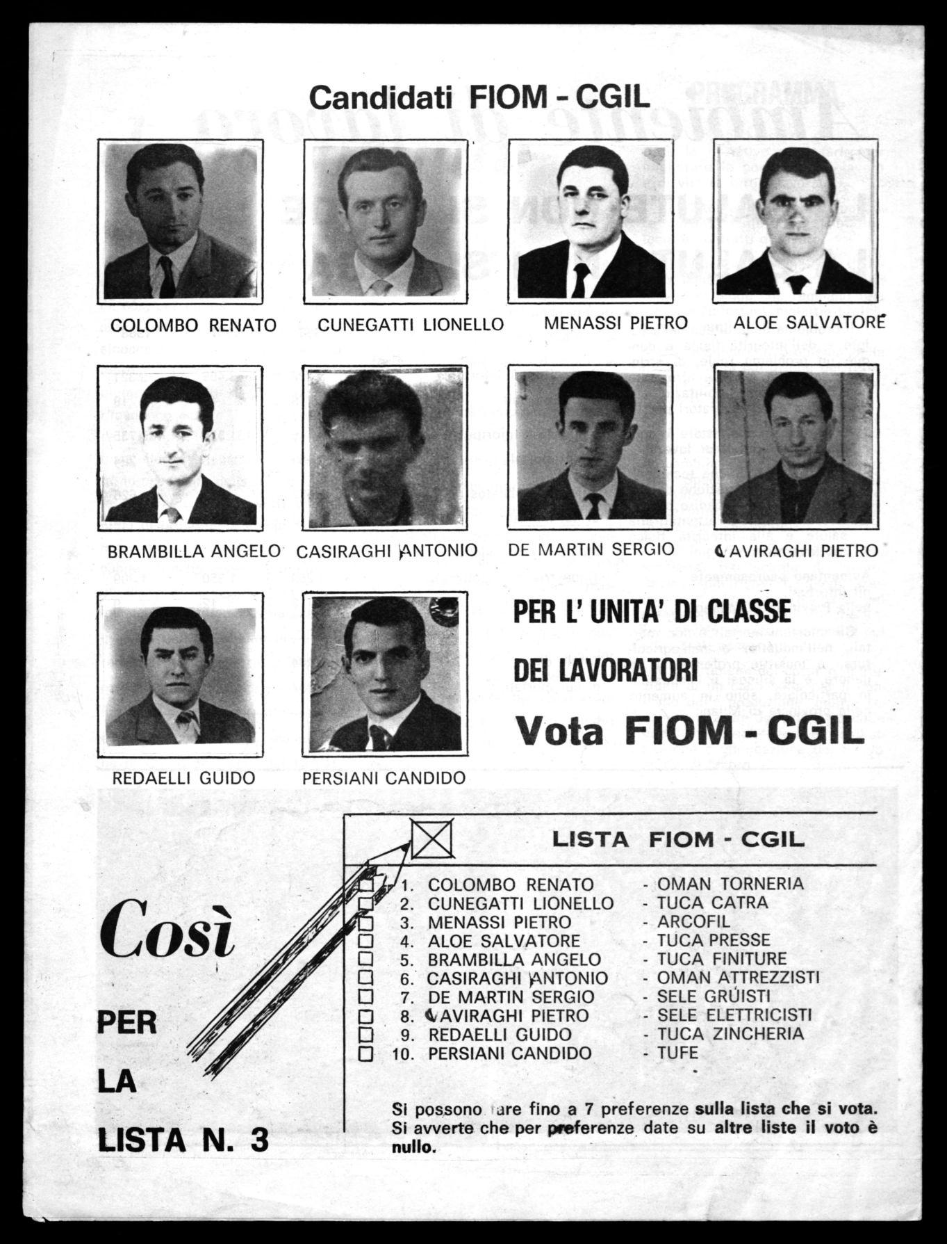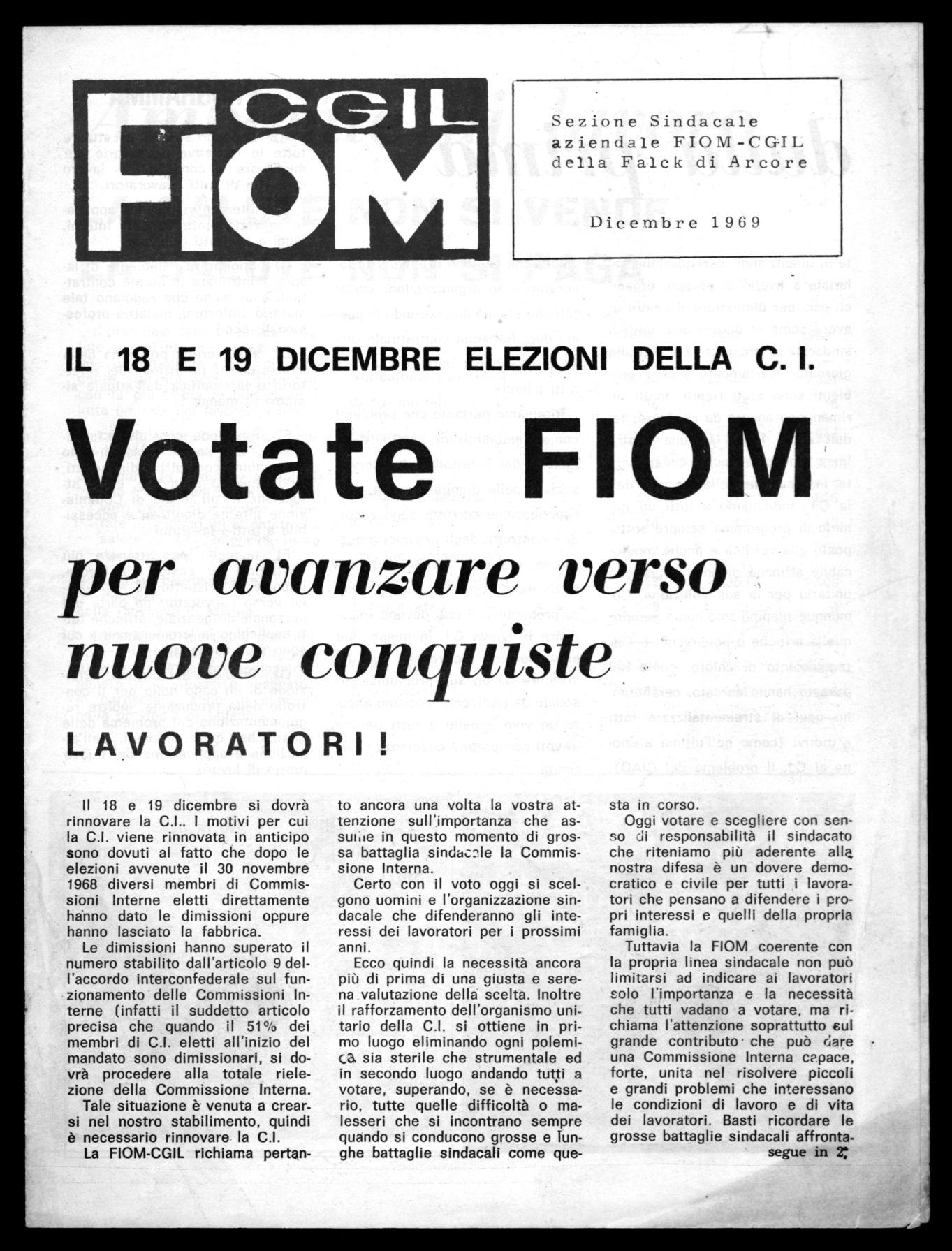 Tuttavia la FIOM coerente con la propria linea sindacale non può limitarsi ad indicare ai lavoratori solo l'importanza e la necessità che tutti vadano a votare, ma richiama l'attenzione soprattutto sul grande contributo che può dare una Commissione Interna c?pace, forte, unita nel risolvere piccoli e grandi problemi che interessano le condizioni di lavoro e di vita dei lavoratori. Basti ricordare le grosse battaglie sindacali affrontasegue in 2: