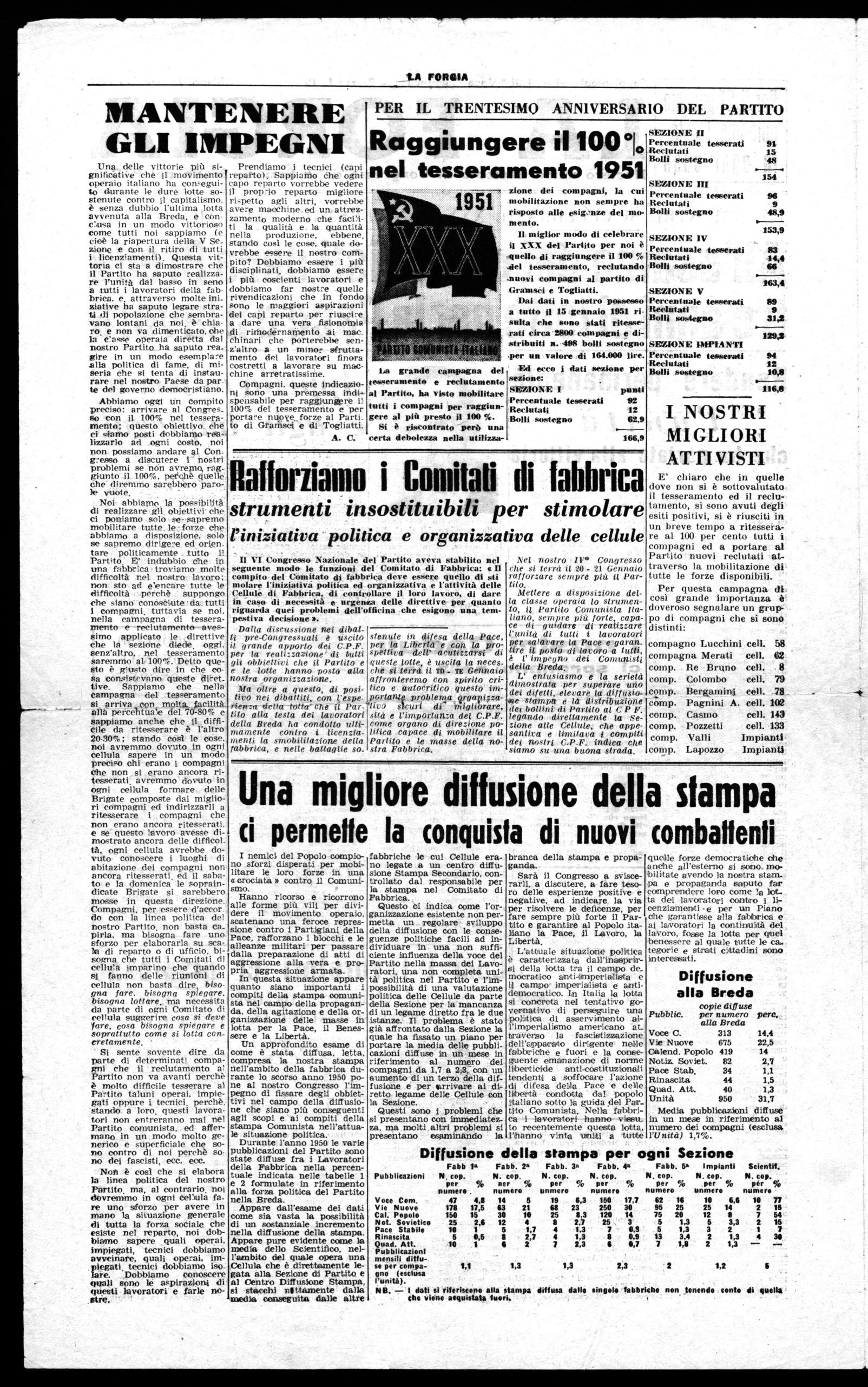 Mettere a disposizione della classe operaia lo strumento, il Partito Comunista Italiano, sempre più forte, capace di guidare di realizzare l'unità di tutti i lavoratori per salavare la Pace e garan. tire il posto di lavoro a tutti, è l' imprunu dei Comunisti della Breda.