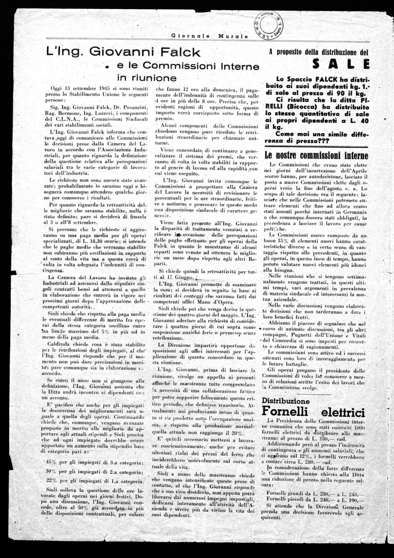 Ci risulta che la ditta PIRELLI (Bicocca) ha distribuito lo stesso quintitativo di sale ai propri dipendenti a L. 40 il kg.