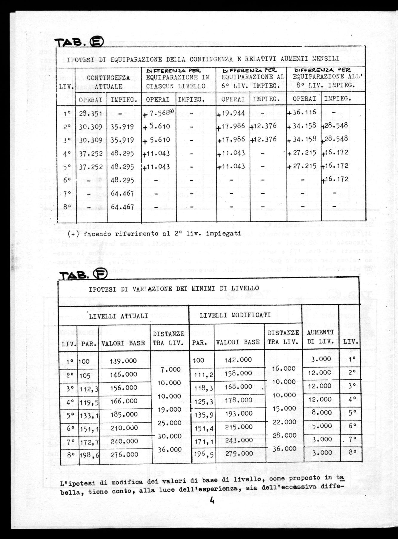 L'ipotesi di modifica dei valori di base di livello, come proposto in ta bella, tiene conto, alla luce dell'esperienza, sia dell'eccessiva diffe-