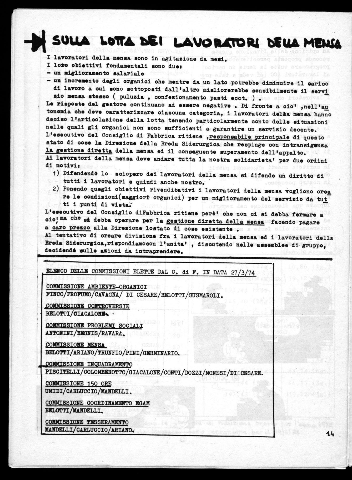L'esecutivo del Consiglio di Fabbrica ritiene ,responsabile principale di questo stato di cose la Direzione della Breda Siderurgica che respinge oon intransigenza la gestione diretta della mensa ed il conseguente superamento dell'appalto.
